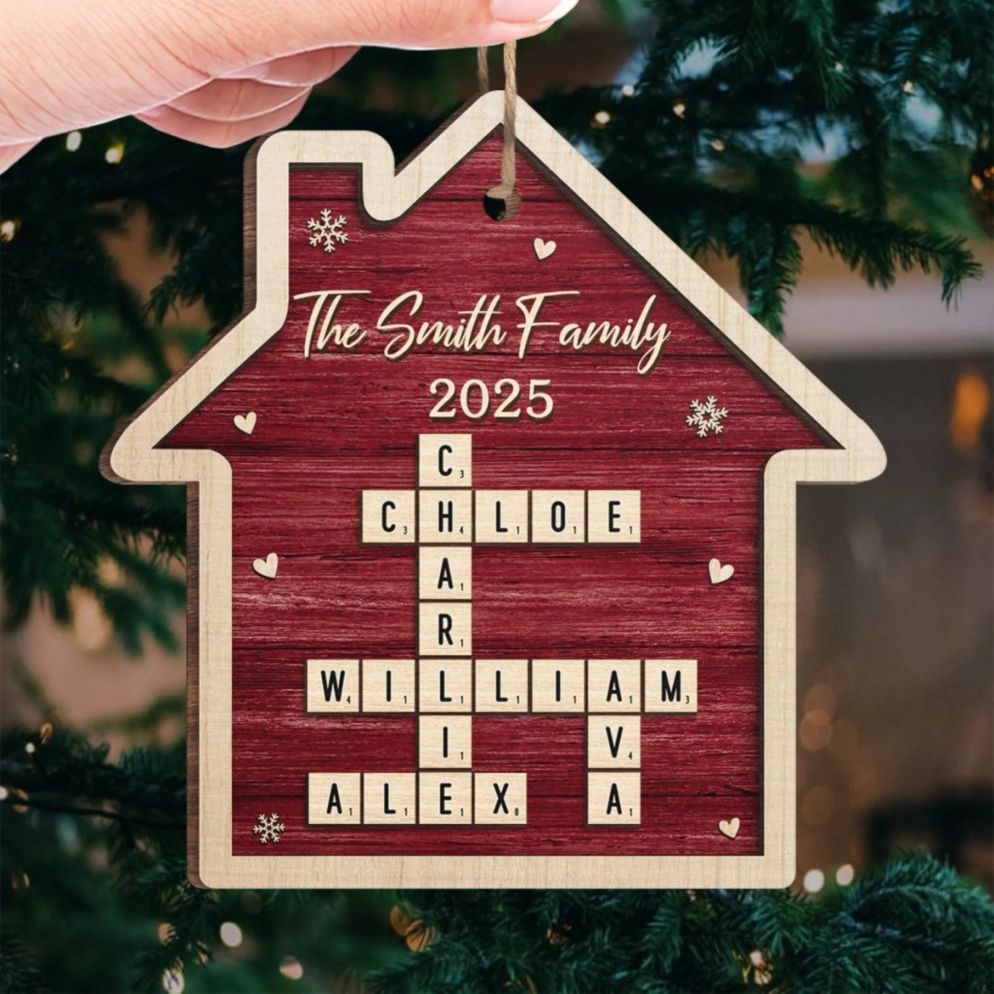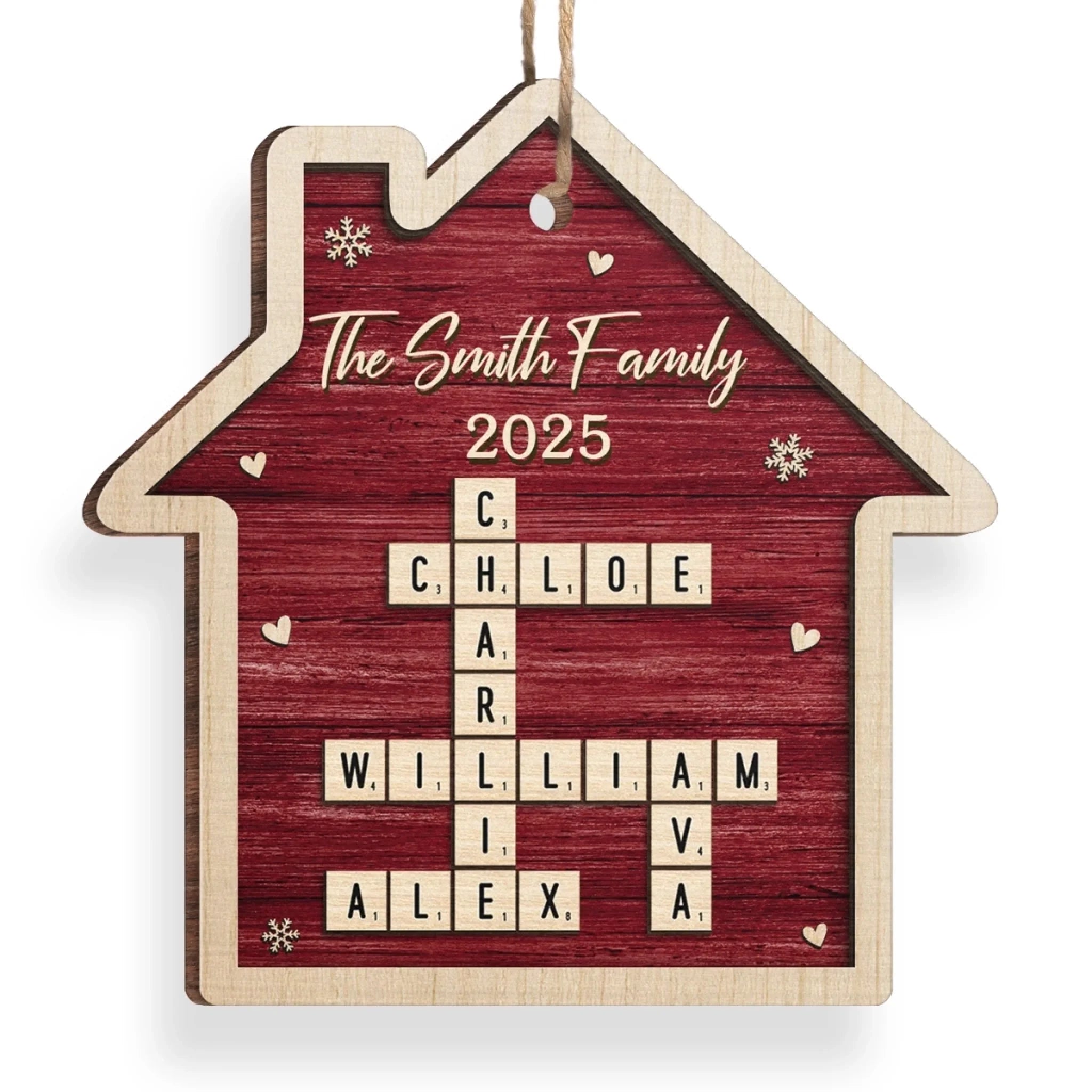 Custom Scrabble Wood Ornament - Personalized Christmas Birthday Gifts For Mom, Dad, Brother, Sister, Kids - Our Home, One Letter At A Time