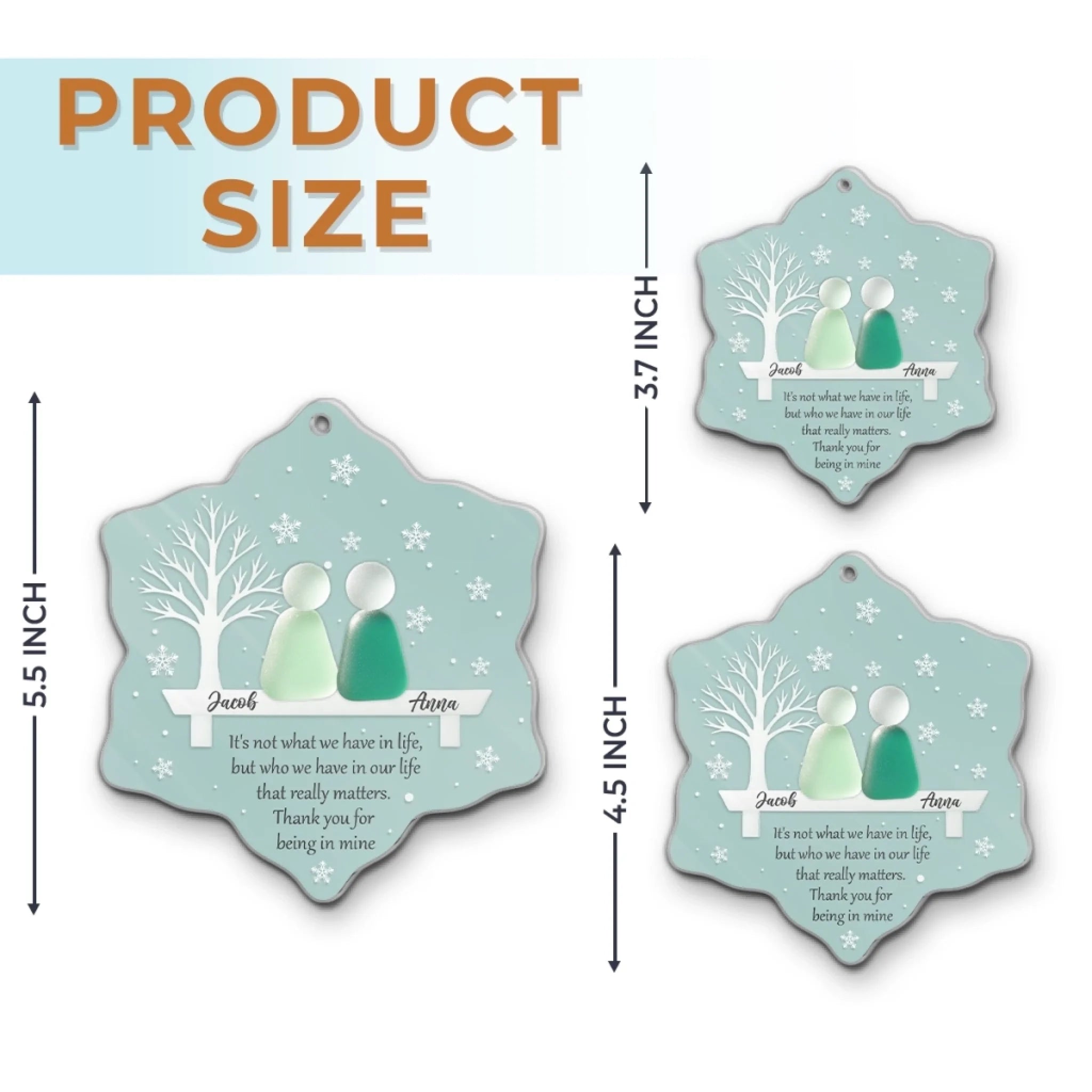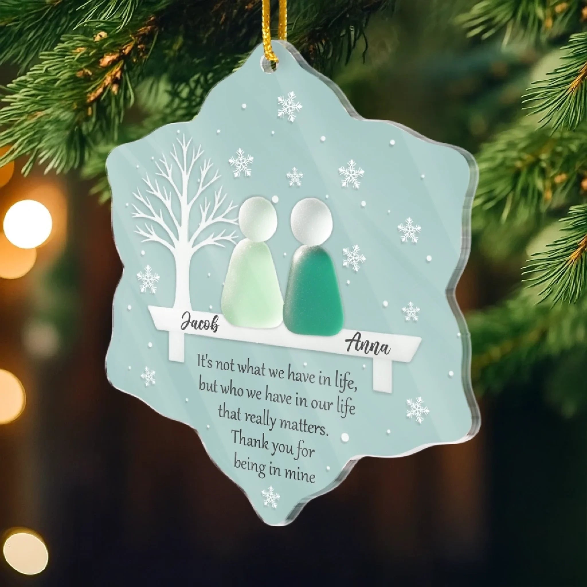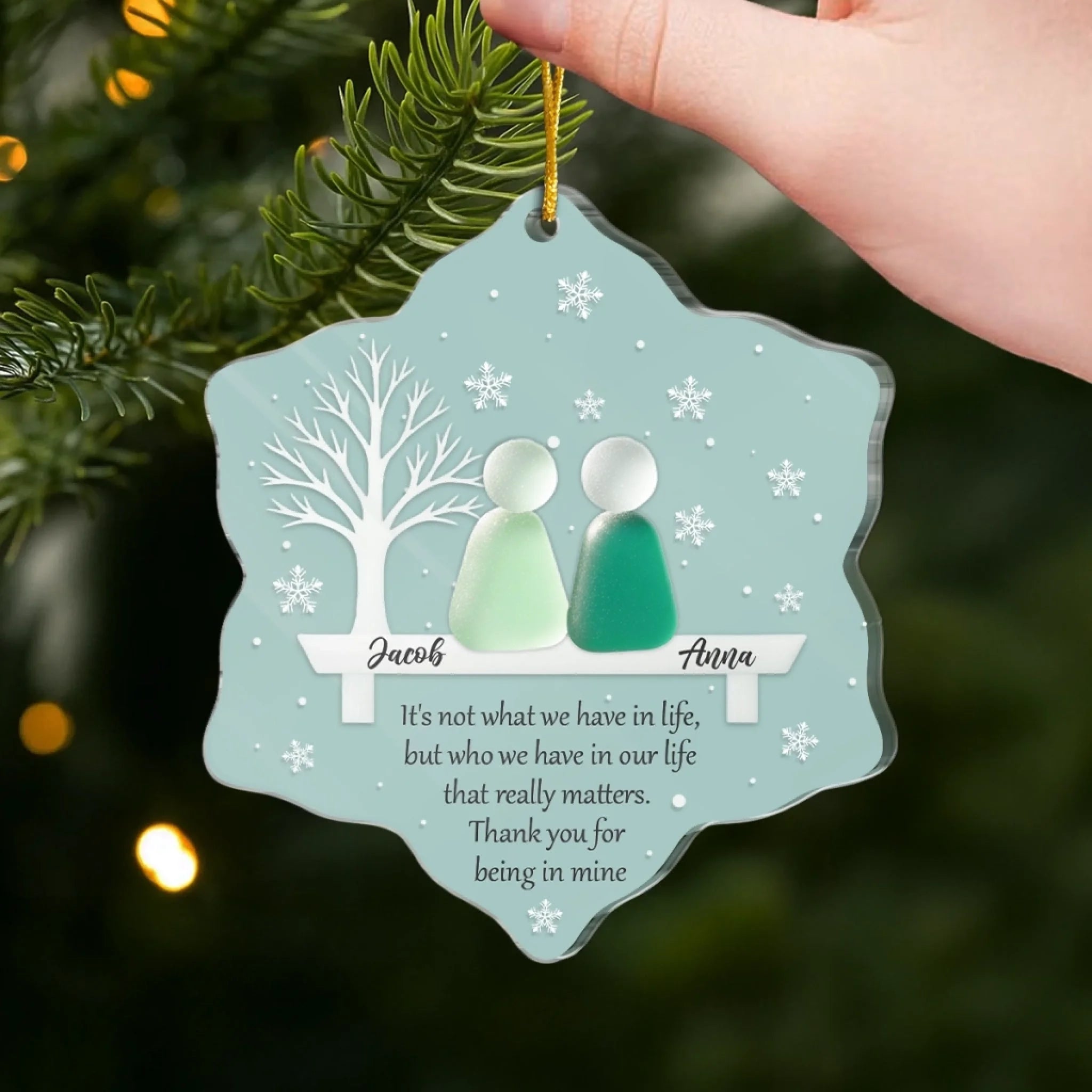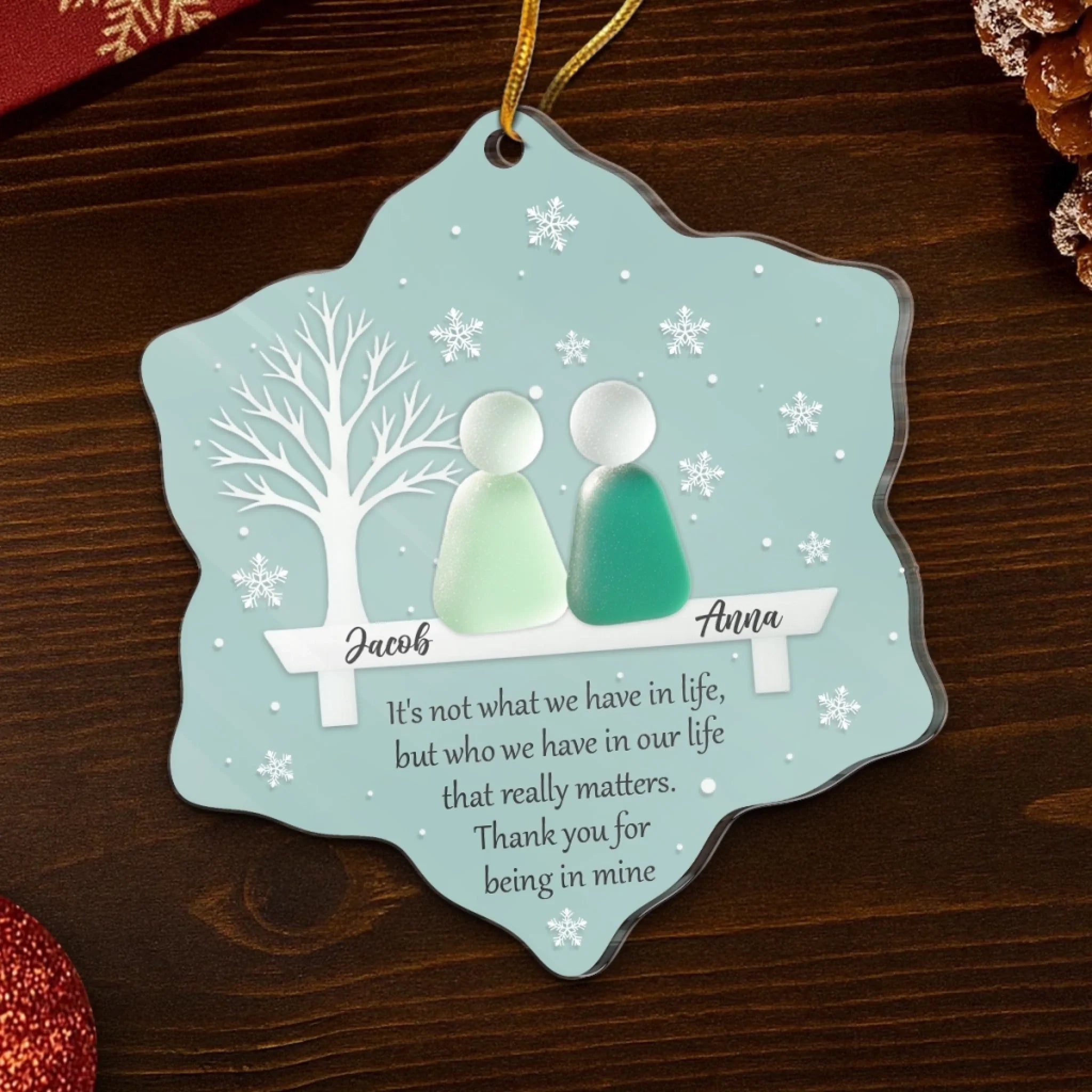 Custom Sea Glass Acrylic Ornament - Personalized Anniversary Christmas Wedding Gifts For Husband And Wife, Him And Her, Couples, Beach Lovers - Two Hearts One Shore
