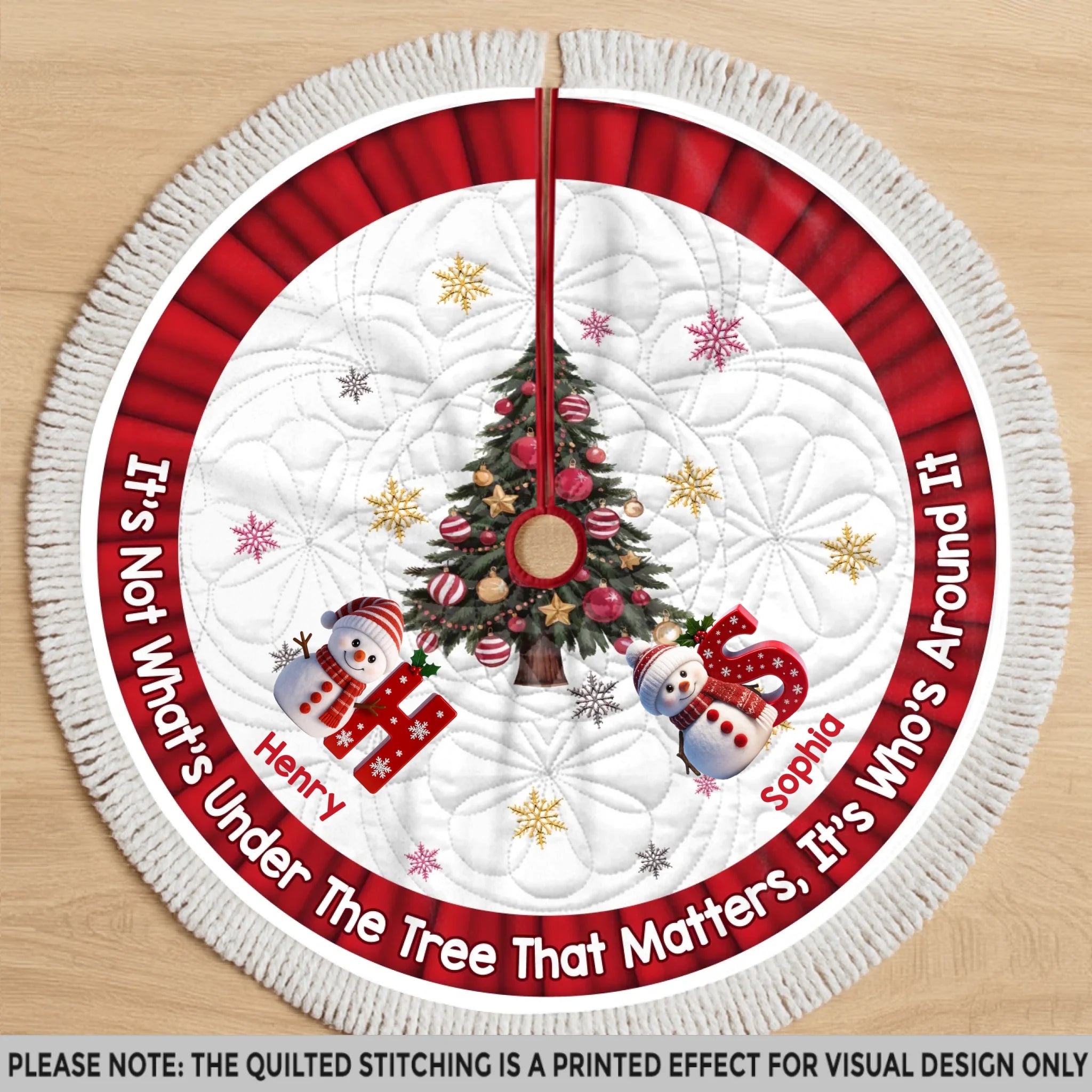 Custom Snowman Tree Skirt - Personalized Christmas Birthday Gifts For Mom, Dad, Brother, Sister, Kids - Hearts Shine Together This Christmas