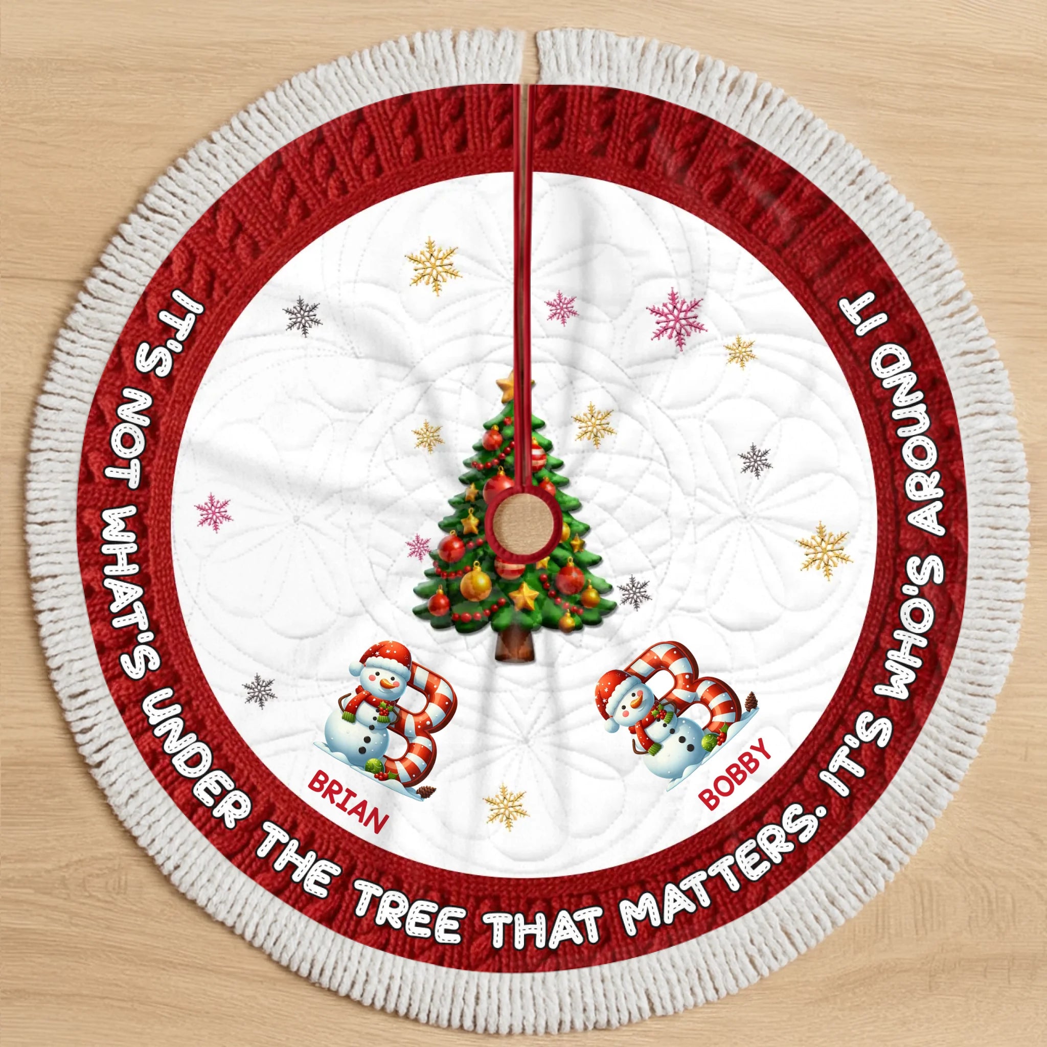 Custom Snowman Tree Skirt - Personalized Christmas Birthday Gifts For Mom, Dad, Brother, Sister, Kids - Hugs Beneath The Tree