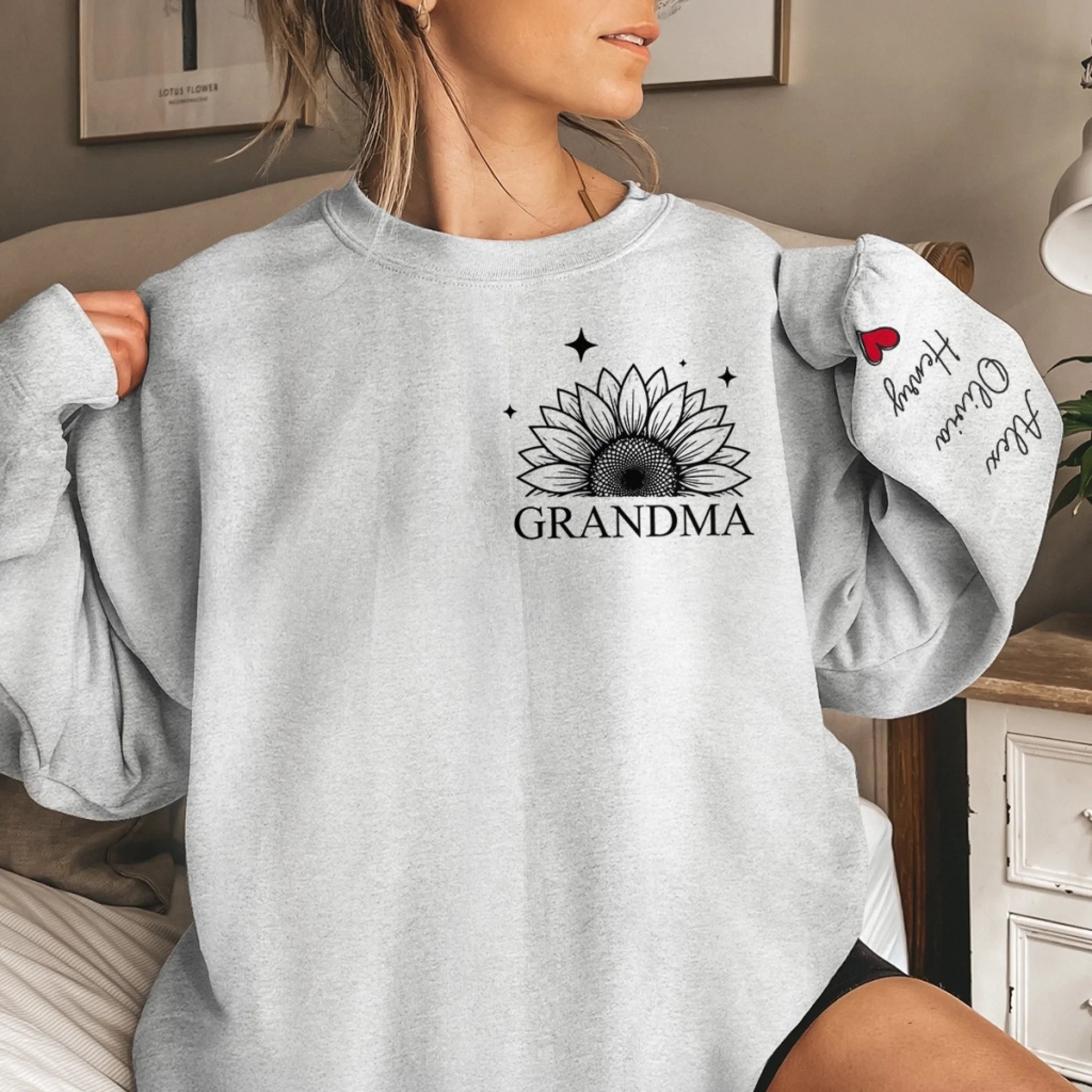 Custom Unisex Sweatshirt, Hoodie With Design On Sleeve - Personalized Birthday Gifts For Mom, Grandma - Heart Of Our Family