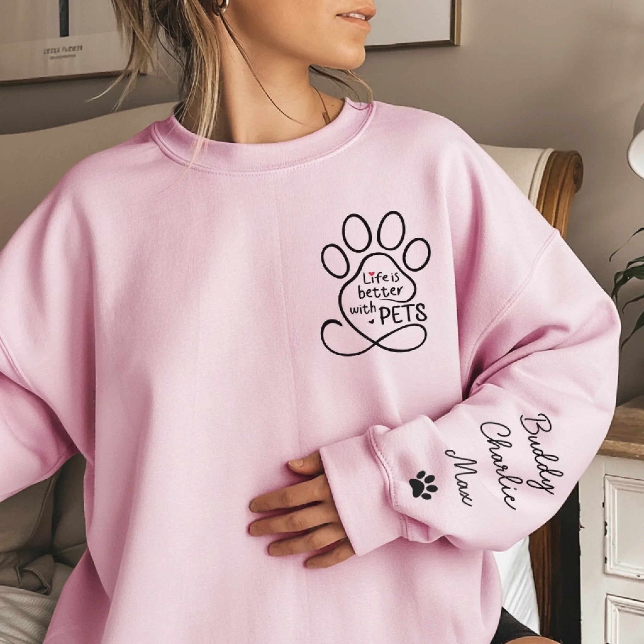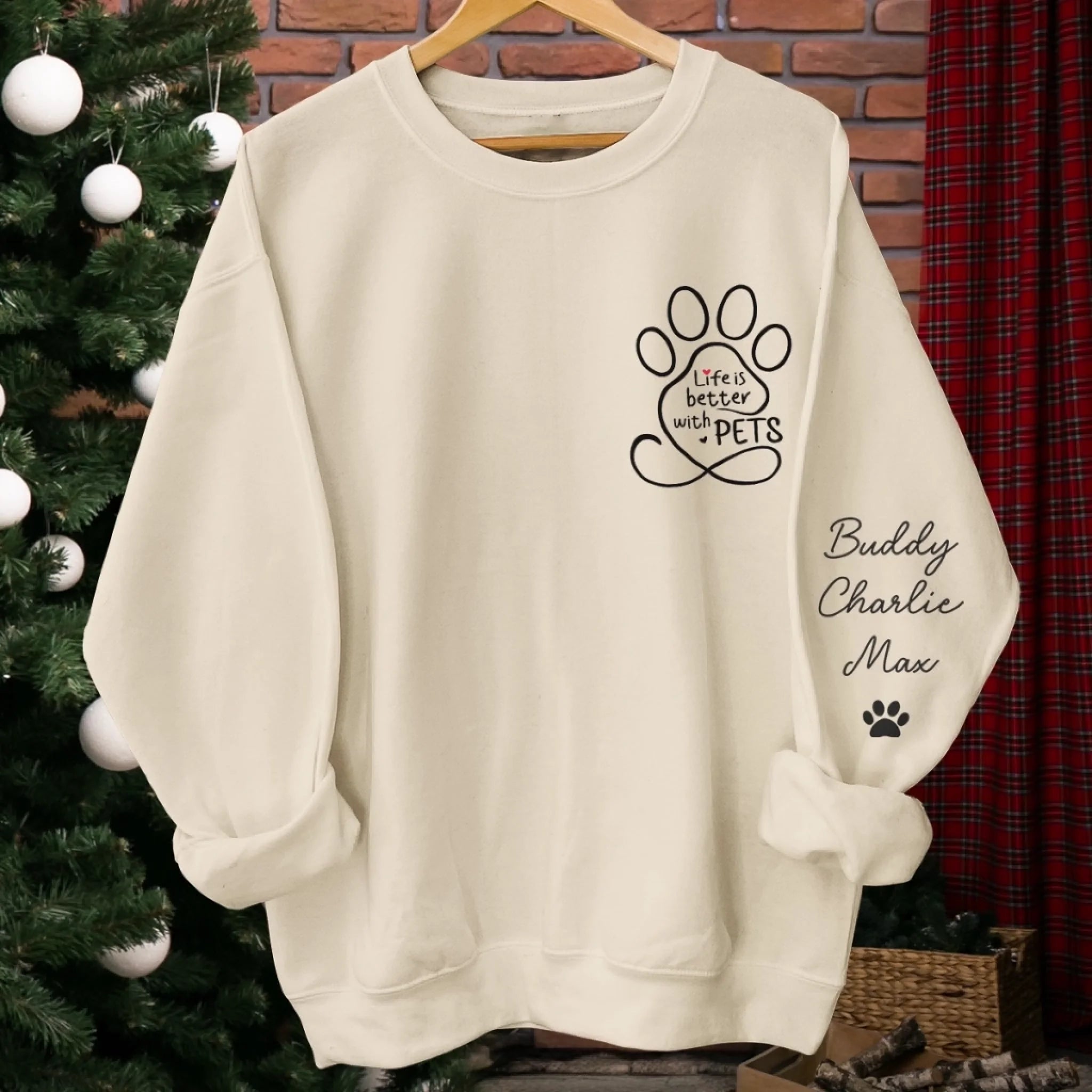Custom Unisex Sweatshirt, Hoodie With Design On Sleeve - Personalized Christmas Birthday Gifts For Dog Cat Lovers, Dog Dad And Mom, Cat Owners - Loved By My Fur Crew