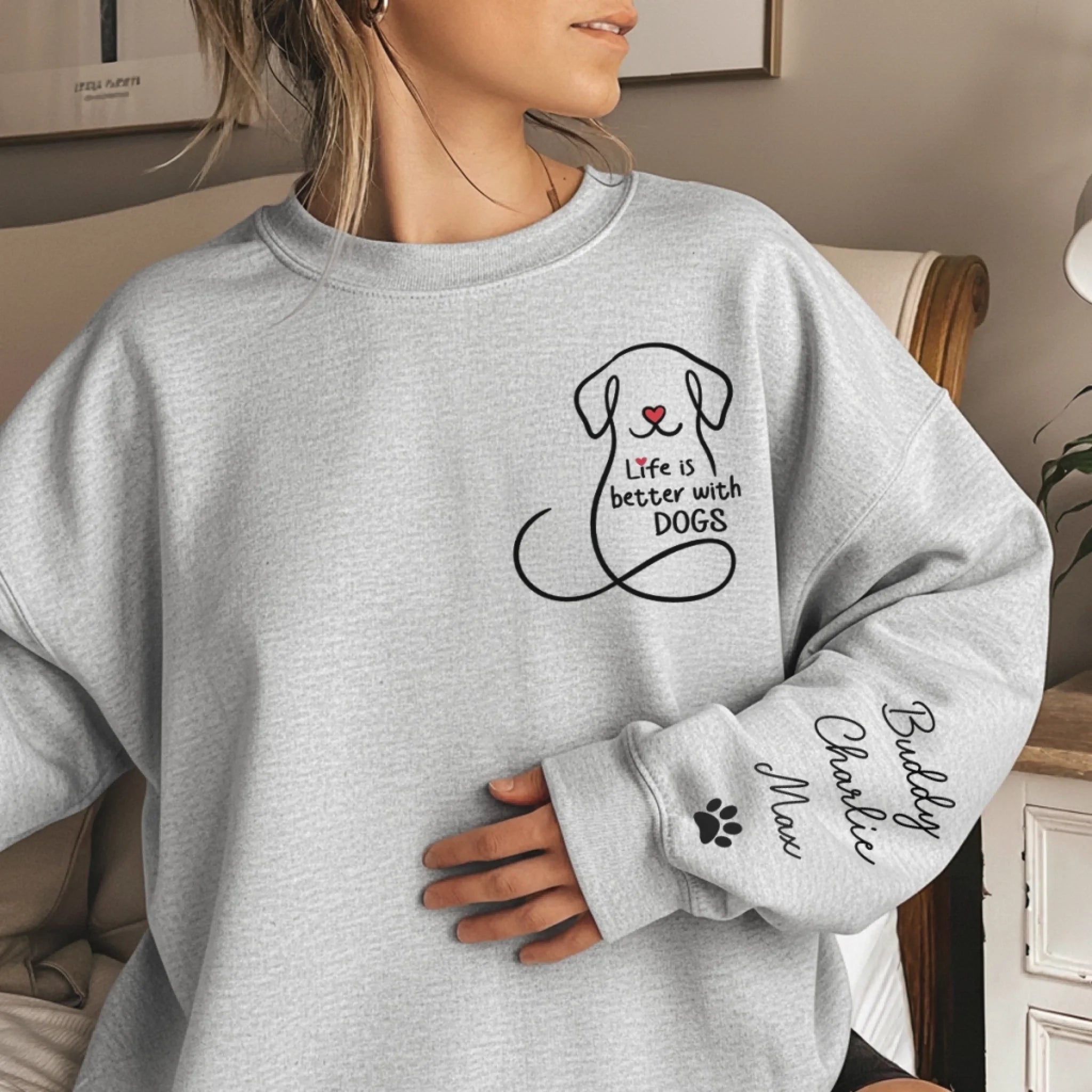 Custom Unisex Sweatshirt, Hoodie With Design On Sleeve - Personalized Christmas Birthday Gifts For Dog Lovers, Dog Dad And Mom - My Emotional Support Squad