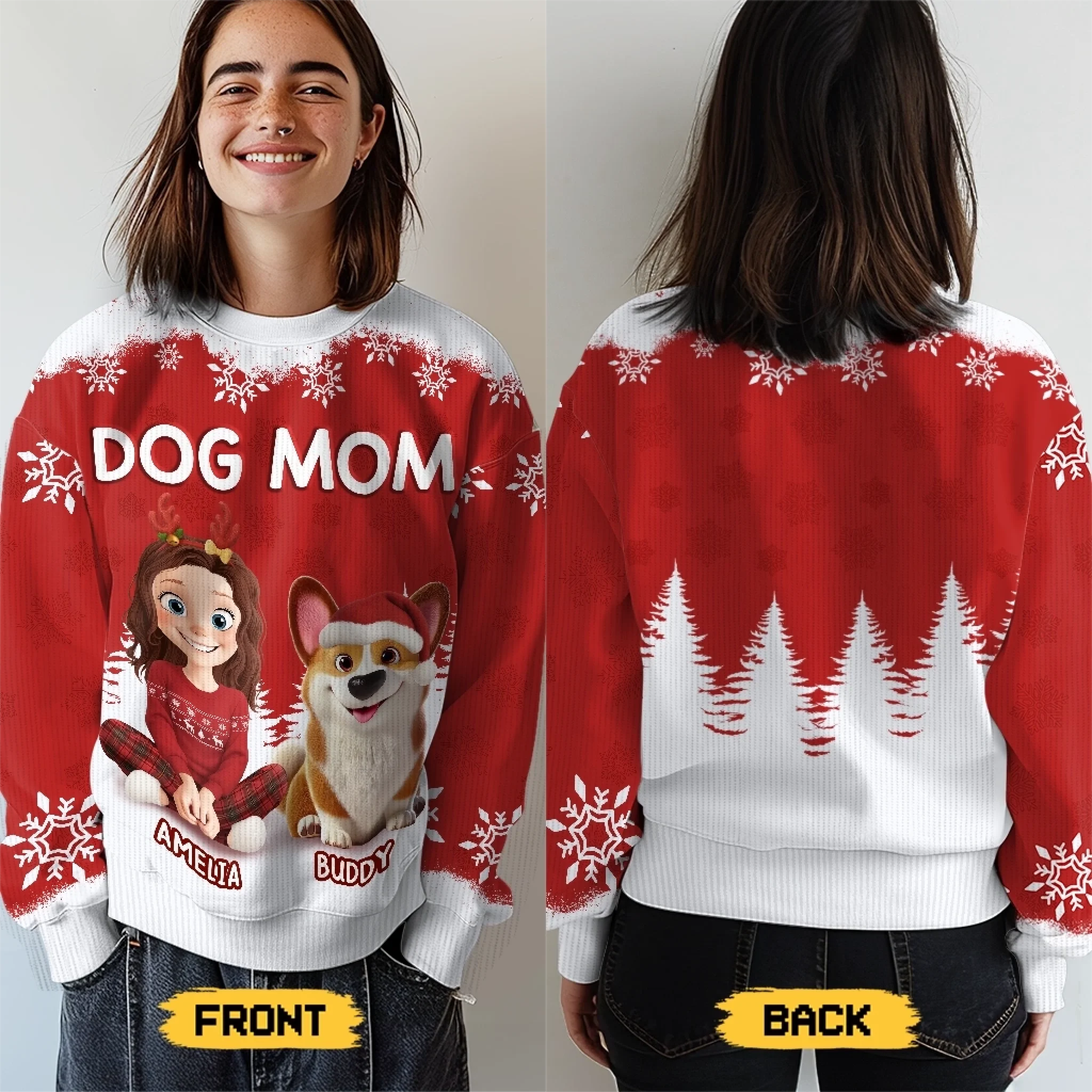 This lovely all-over-print sweatshirt is a perfect choice whether you are seeking for a special gift for your loved ones or just want to dress up your Holiday season with a trendy outfit.