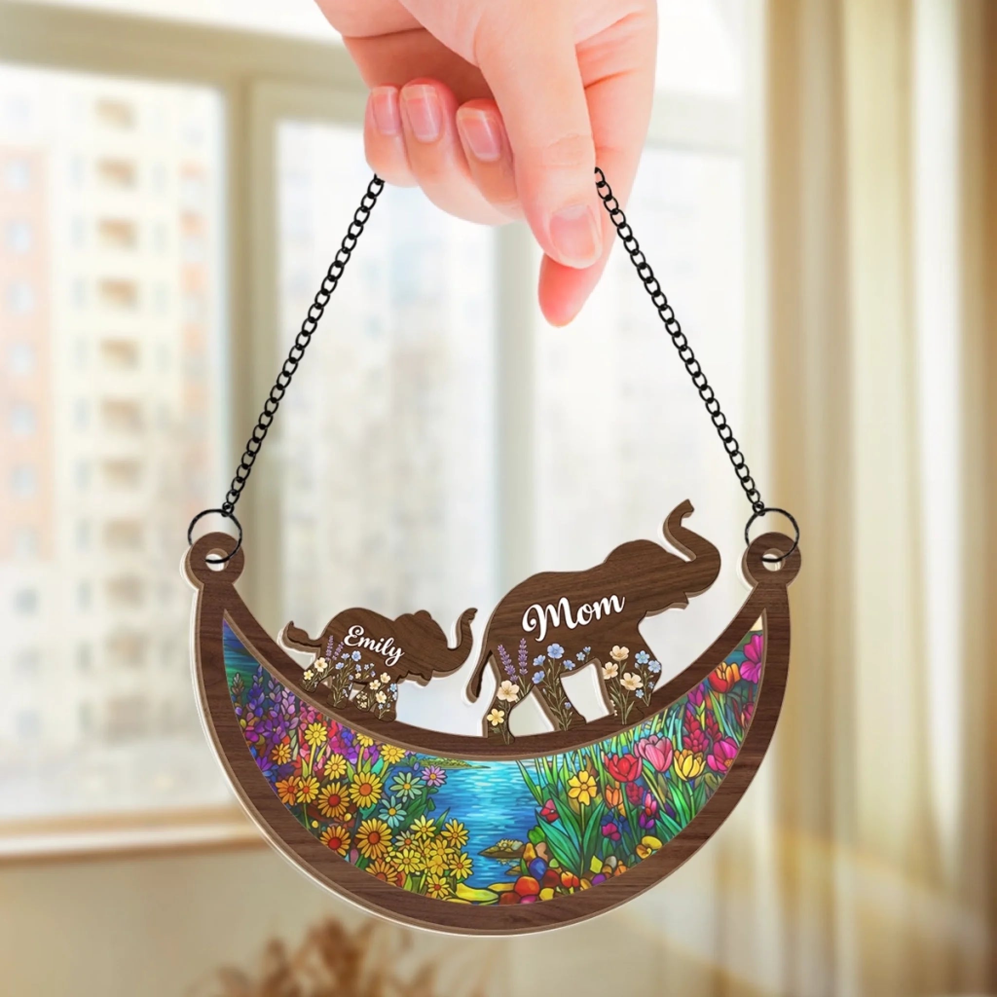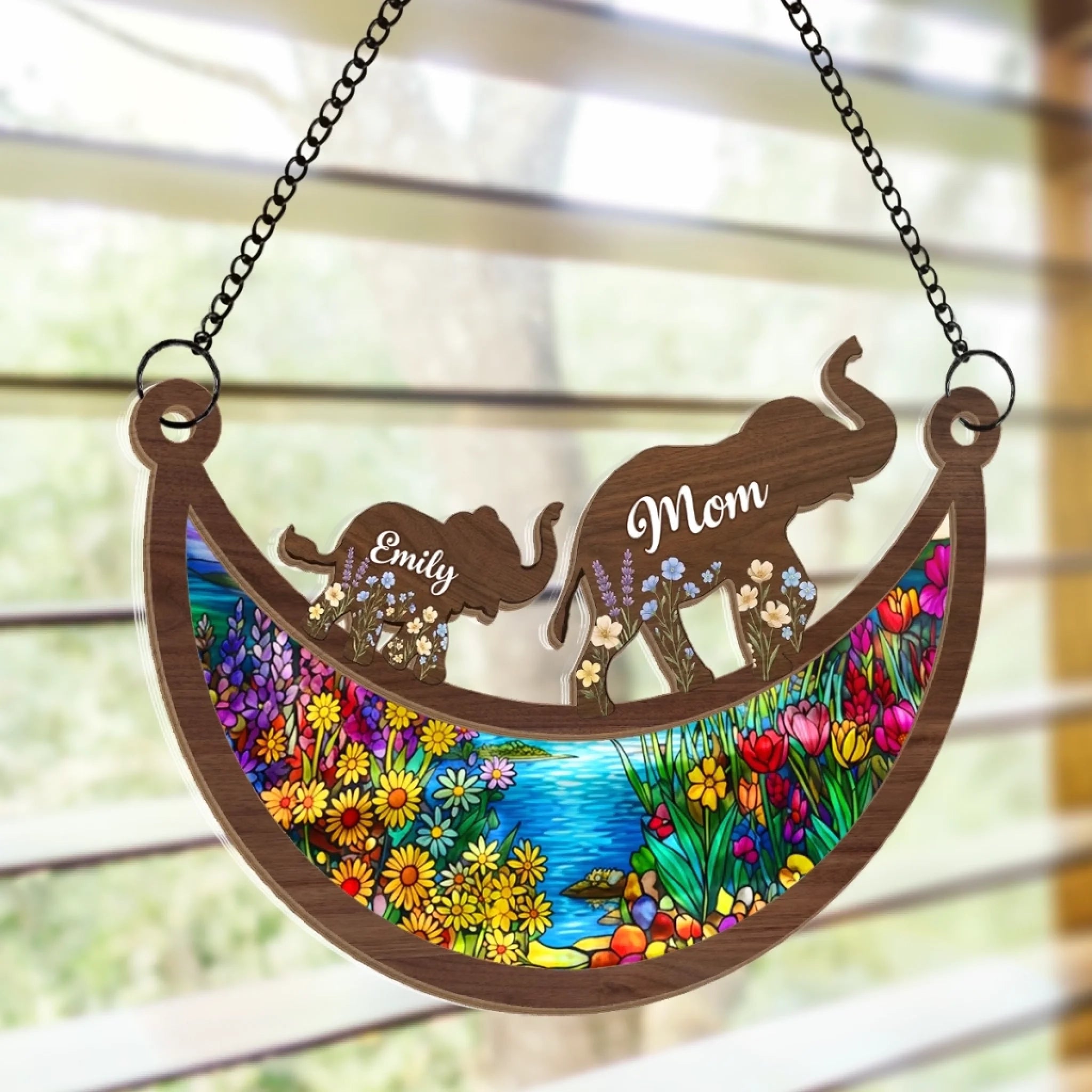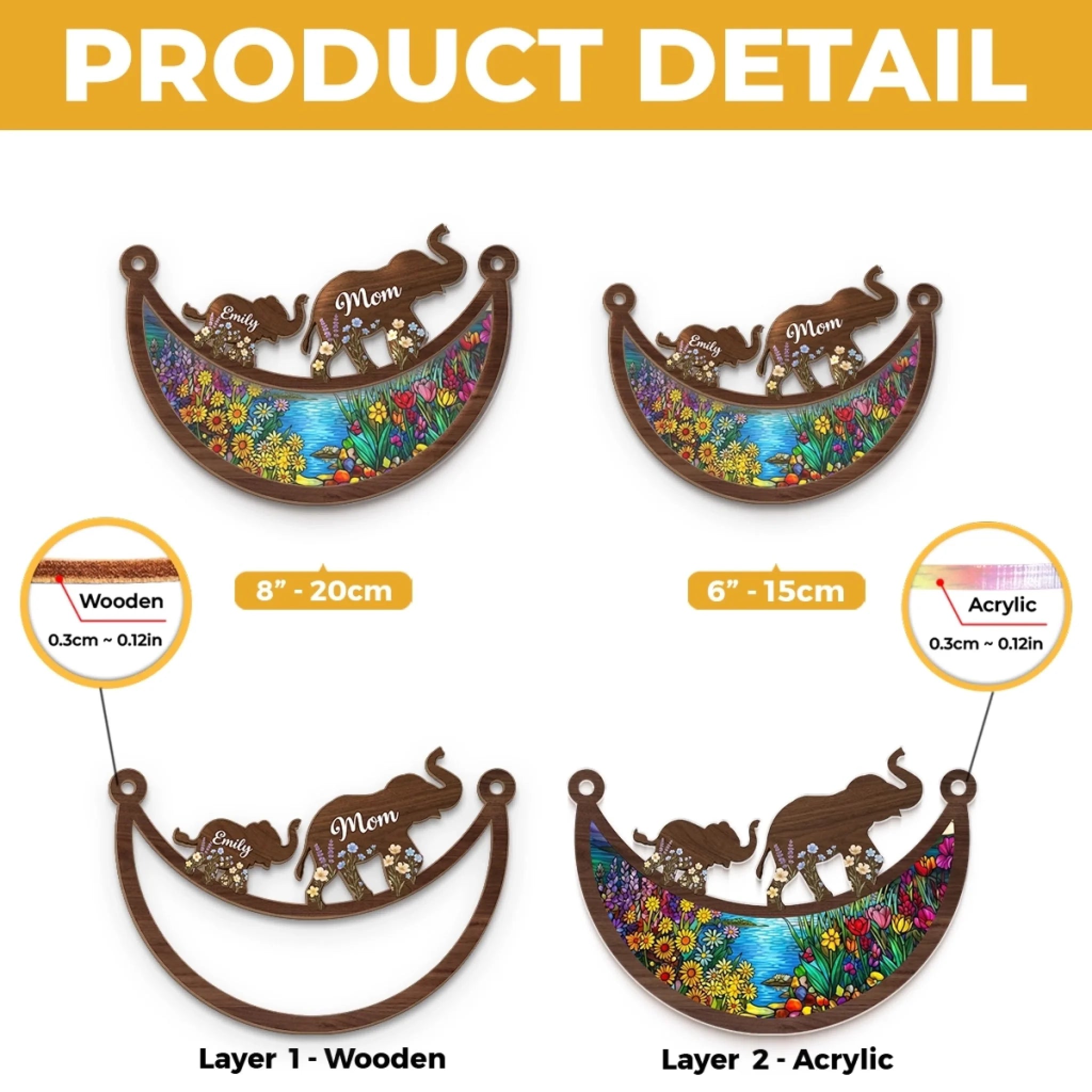 • Material: The front of this suncatcher is made from premium natural wood and mounted on acrylic plexiglass.
