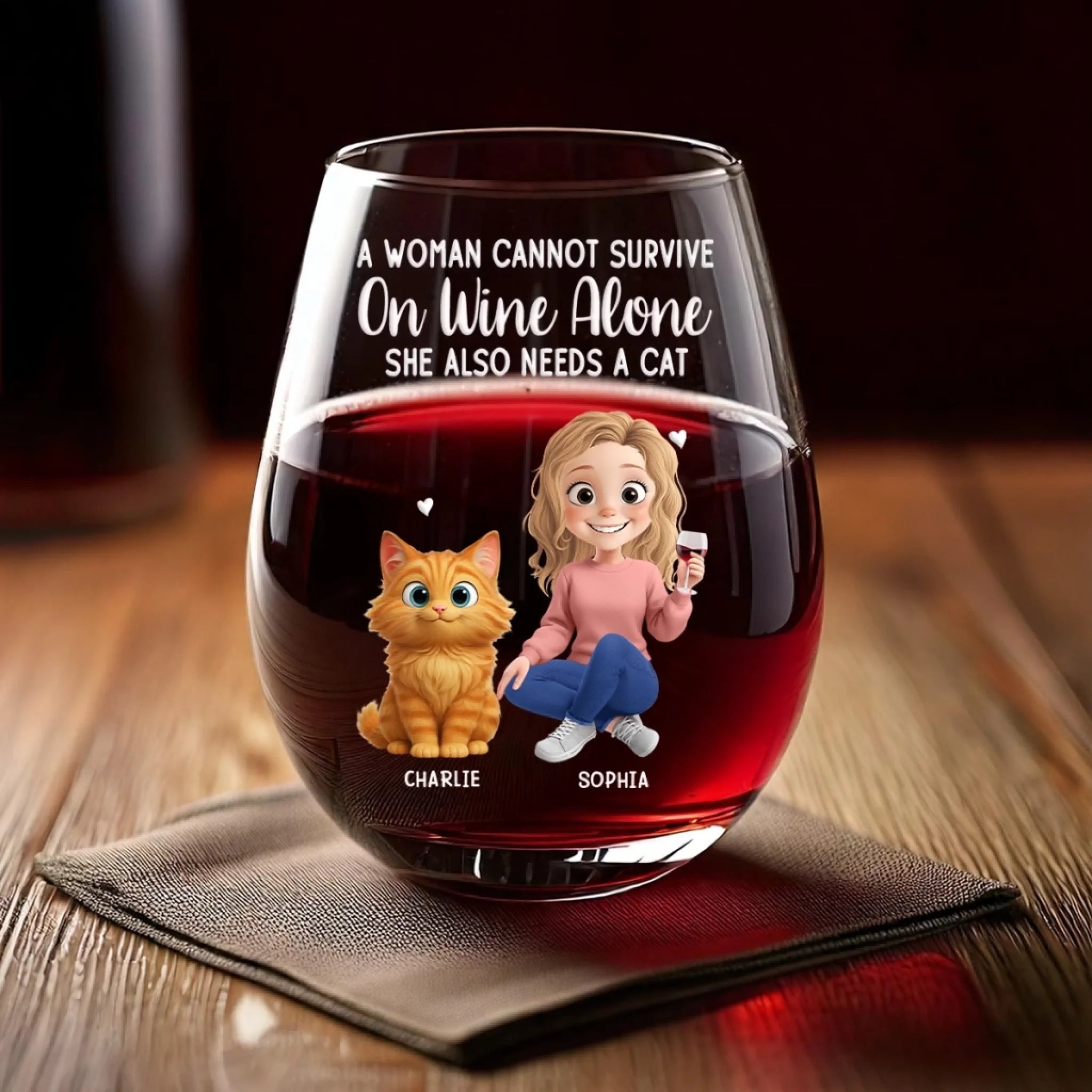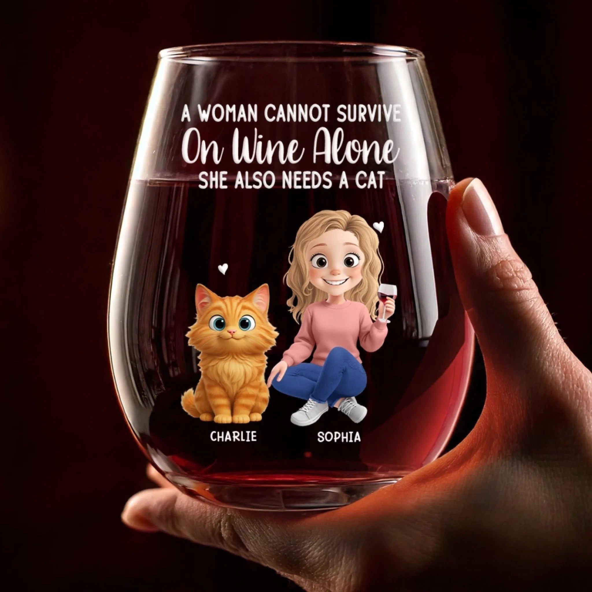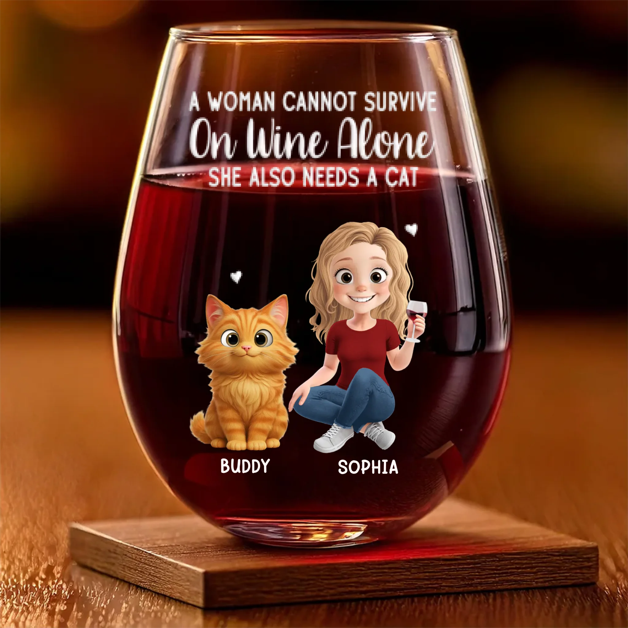 Custom Wine Glass - Personalized Christmas Birthday Gifts For Cat Lovers, Cat Mom And Dad - Life Needs A Purr