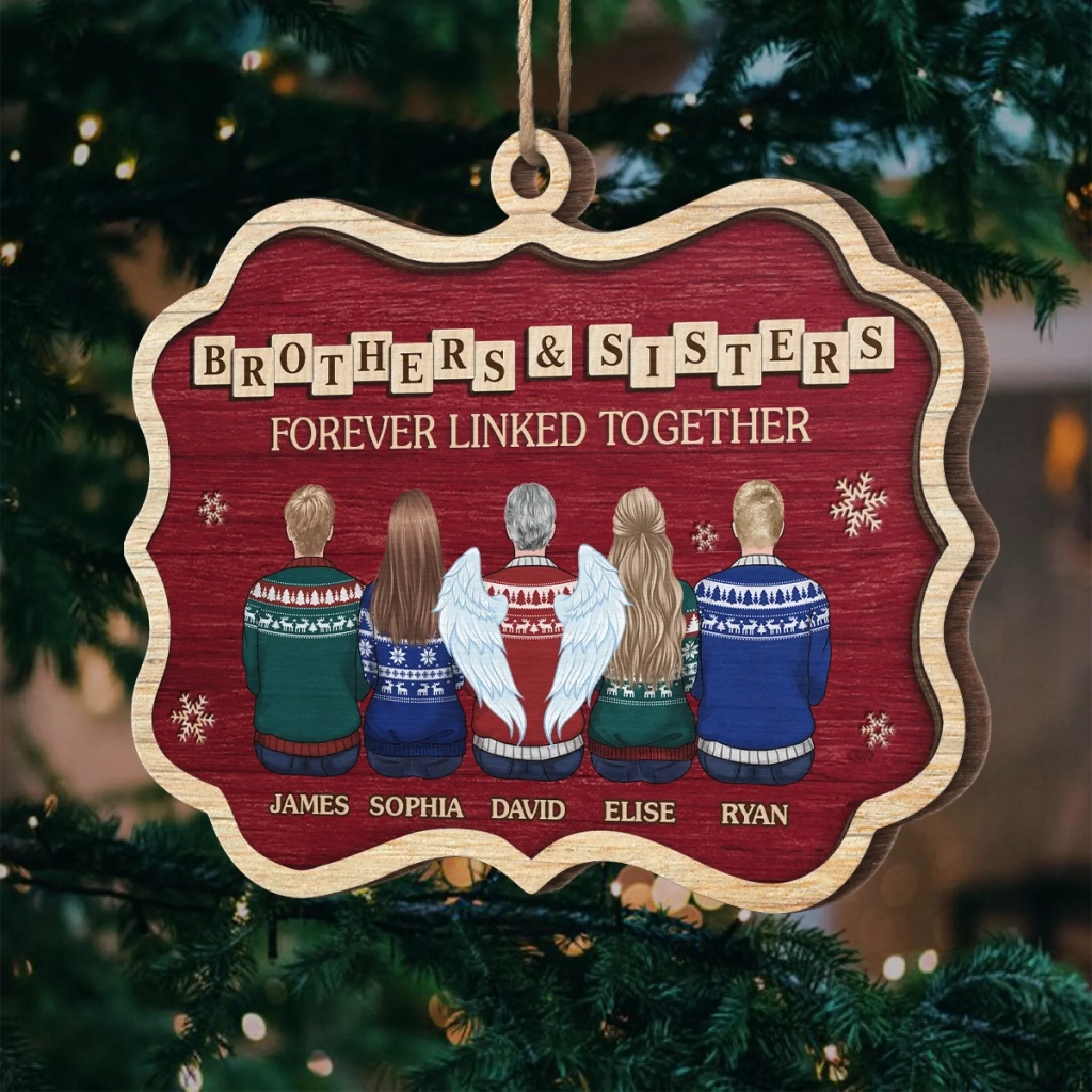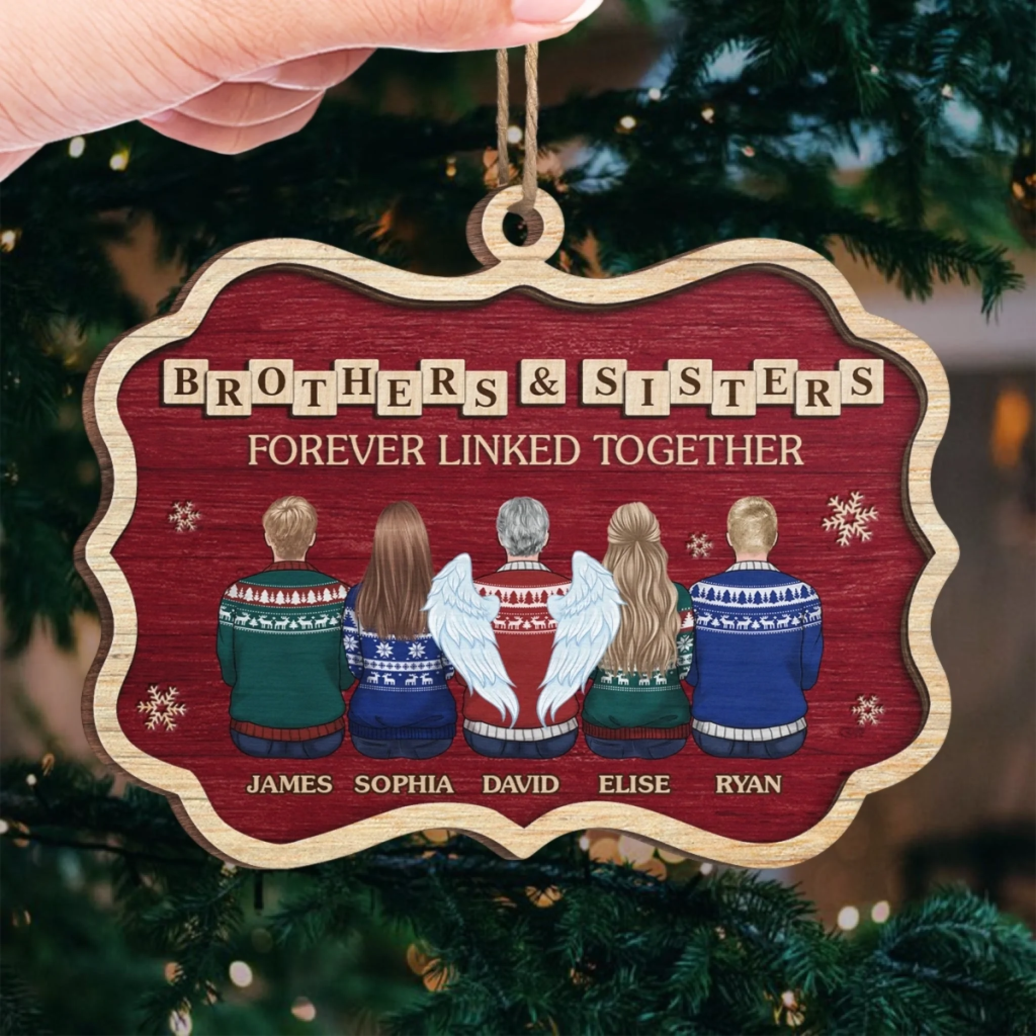 Custom Wood Ornament - Personalized Christmas Birthday Gifts For Brother, Sister - Forever Linked By Love