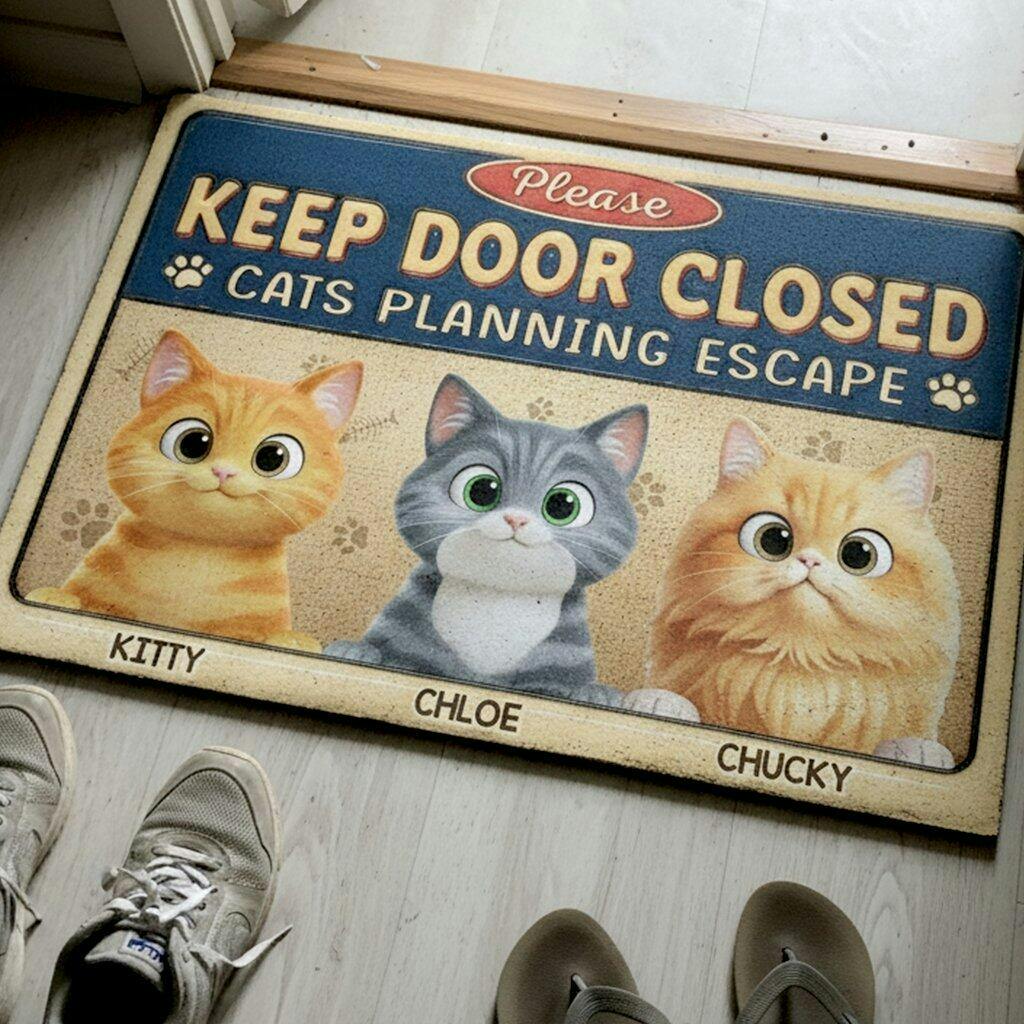 Message: "Keep door closed - Cats/Dogs/Pets planning escape...".