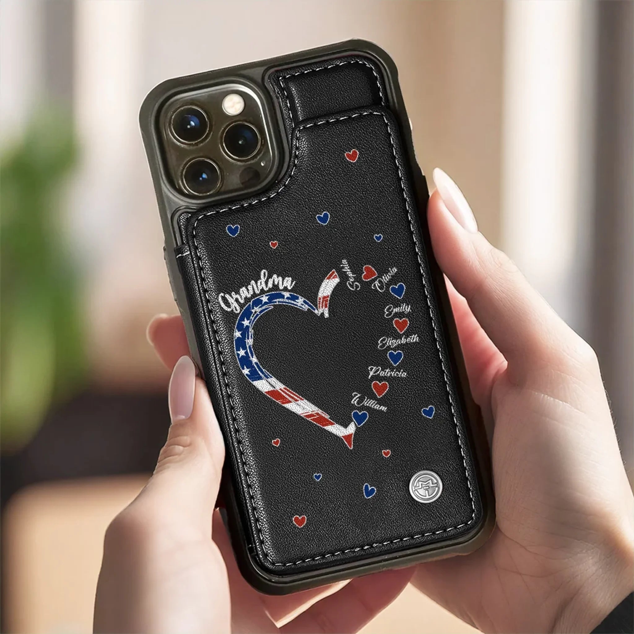 Families Grow Strong In The Warmth Of Grandma’s Love - Family Personalized Custom Leather Flip Wallet Phone Case - Mother's Day Gift For Mom, Grandma