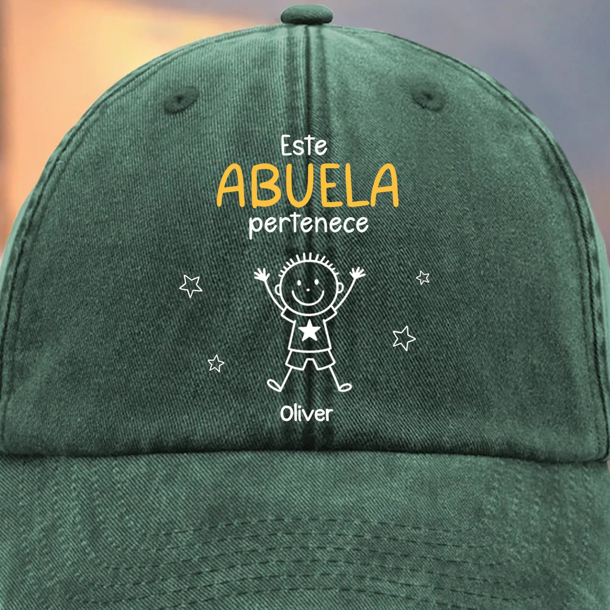 Looking for a heartfelt gift for Grandpa? This Gorra de Béisbol Personalizada de Mezclilla Vintage Lavada – Regalos de Cumpleaños Personalizados para Abuelo – Este Abuelo Pertenece is a stylish way to celebrate the amazing man your kids call Grandpa. Whether it’s for birthdays, Father’s Day, Christmas, Grandparents Day, Thanksgiving, retirement, or just because – this cap is made for the proud abuelo in your life.