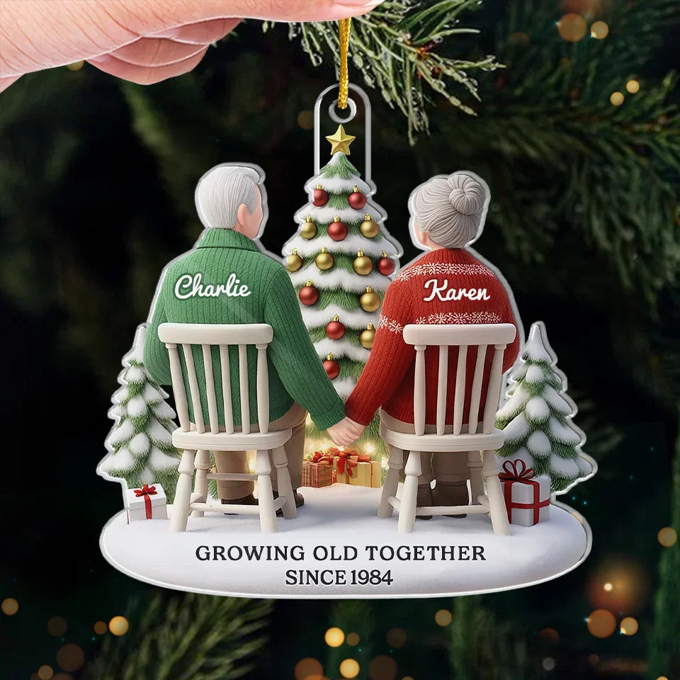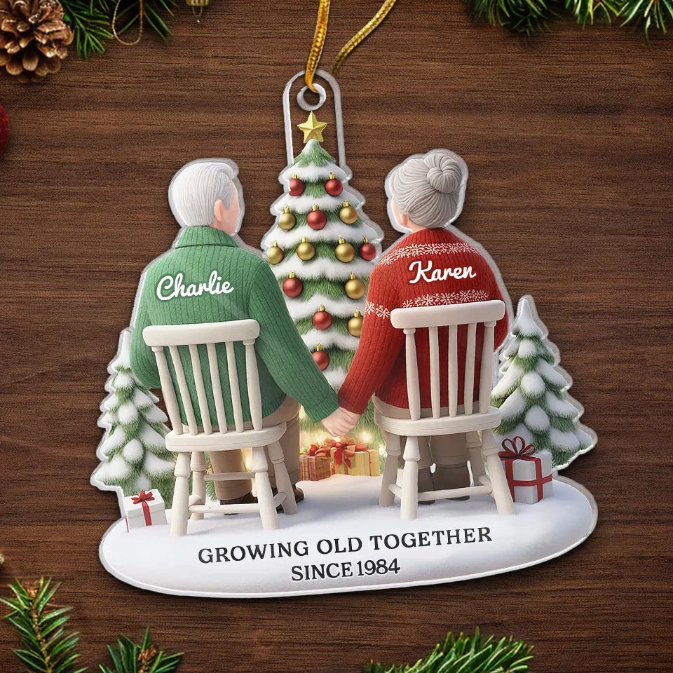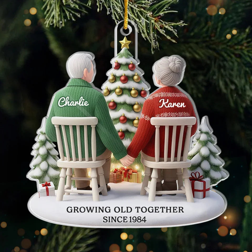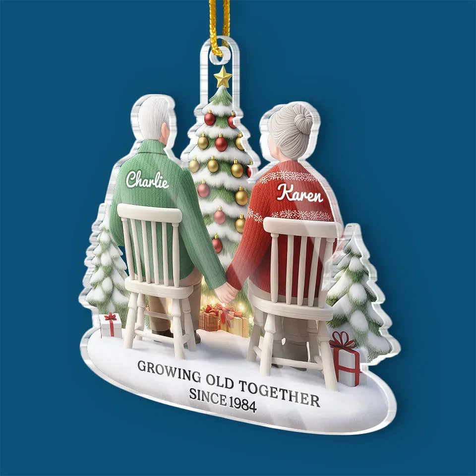 Growing Old Together - Couple Personalized Custom 3D Inflated Effect Printed Ornament - Acrylic Custom Shaped - Christmas Gift For Husband Wife, Anniversary