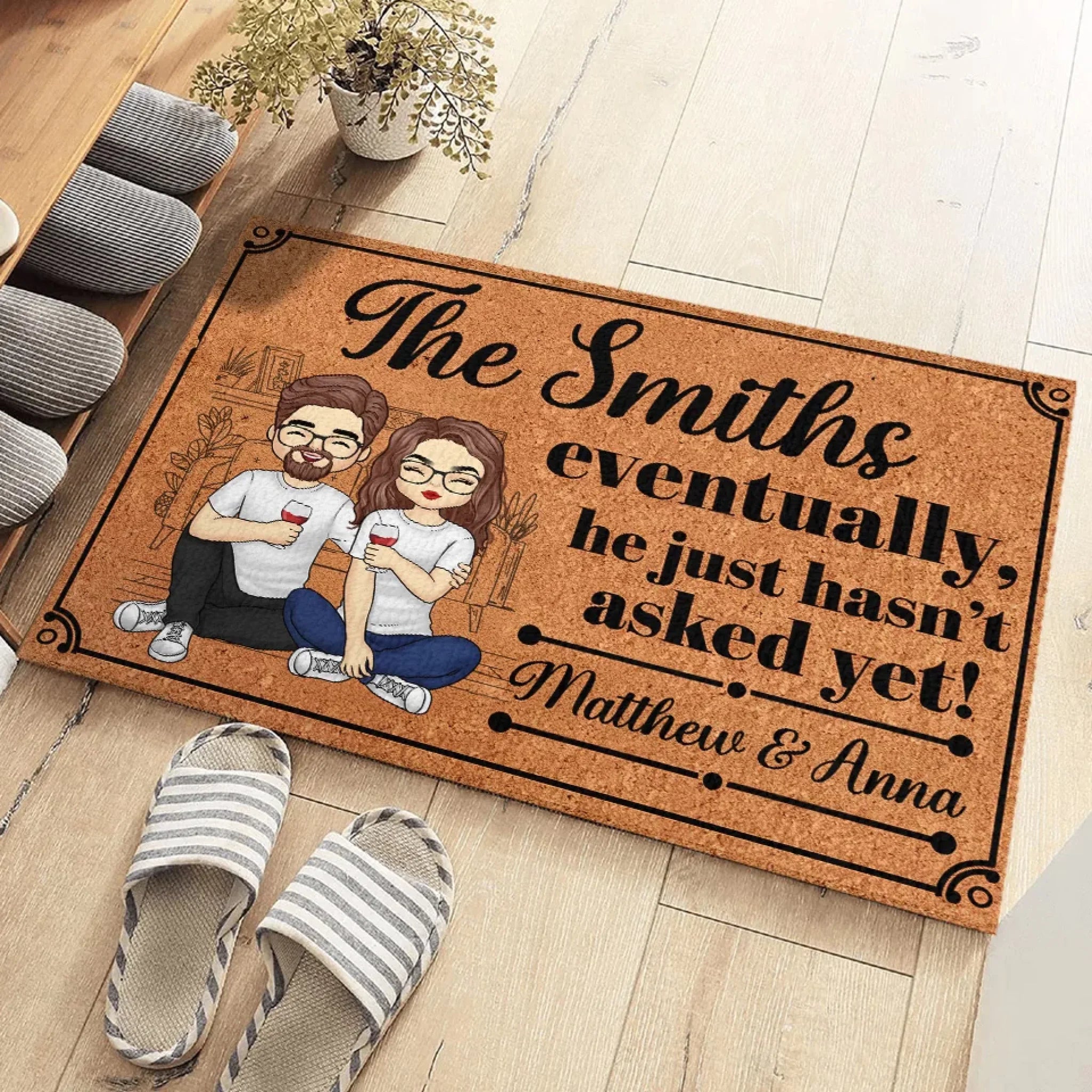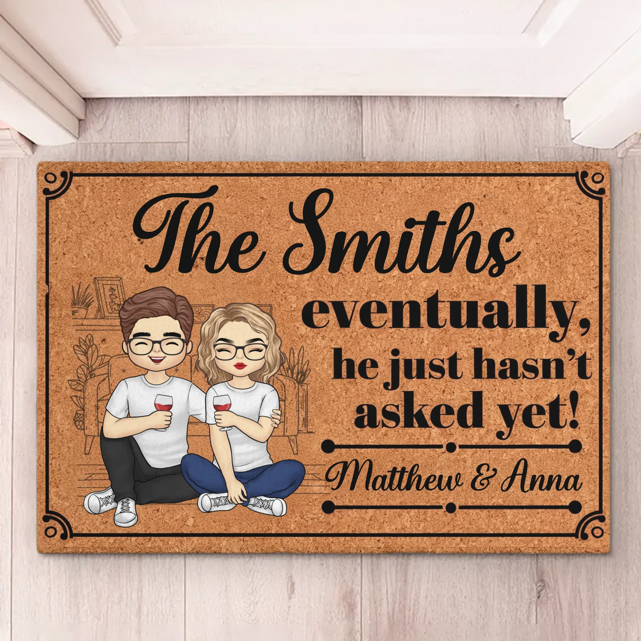 He Just Hasn't Asked Yet - Couple Personalized Custom Home Decor Decorative Mat - House Warming Gift For Husband Wife, Anniversary