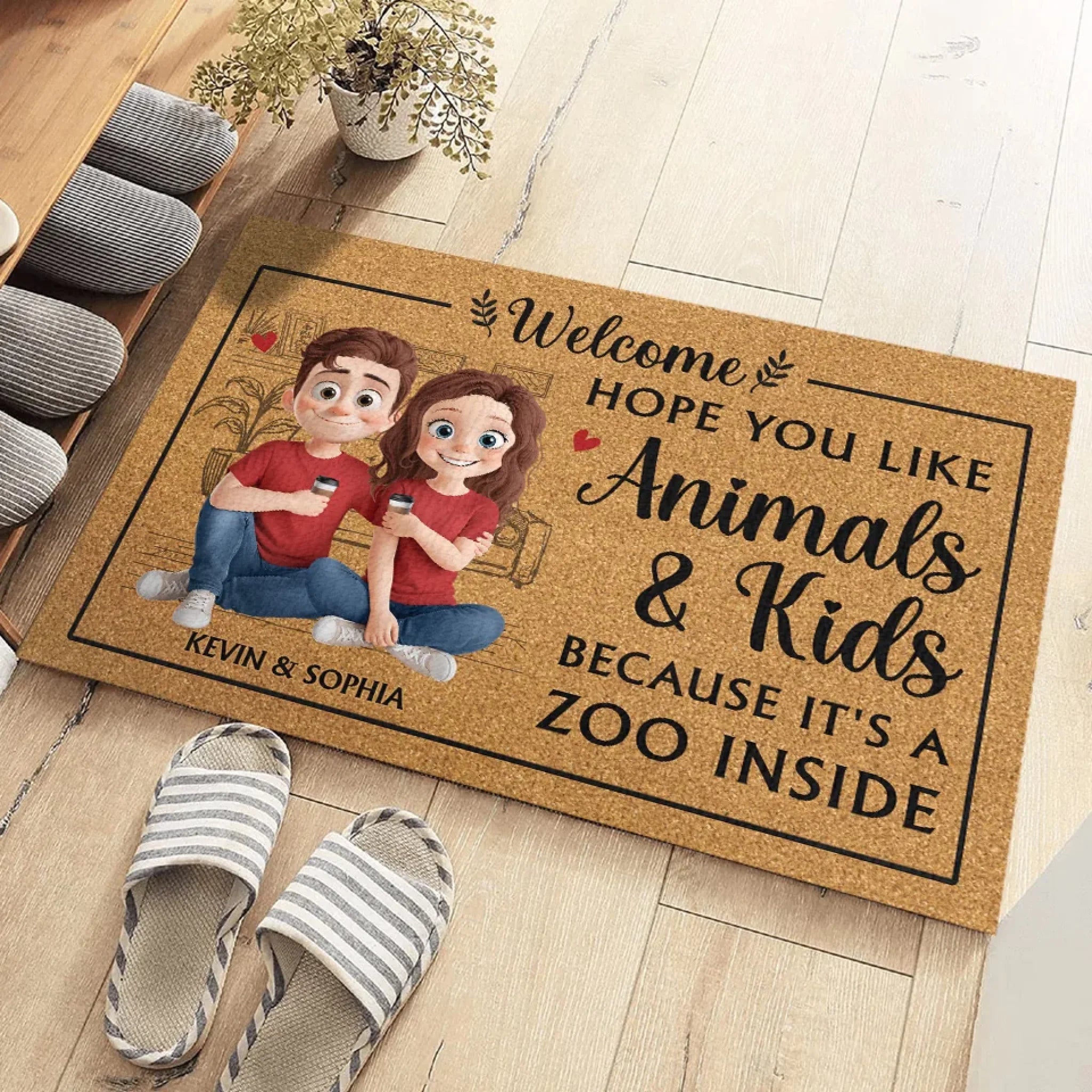 Hope You Like Animals & Kinds Because It's A Zoo Inside - Couple Personalized Custom Home Decor Decorative Mat - House Warming Gift For Husband Wife, Anniversary