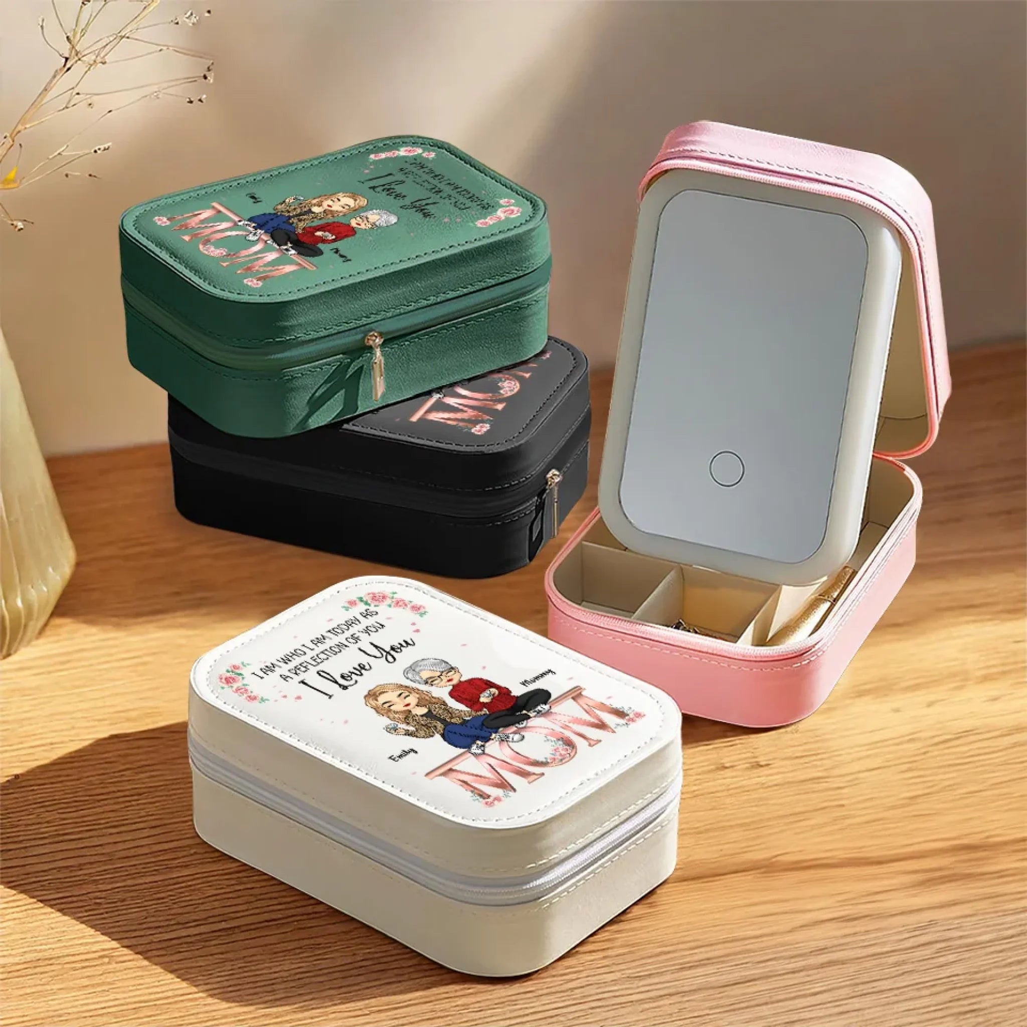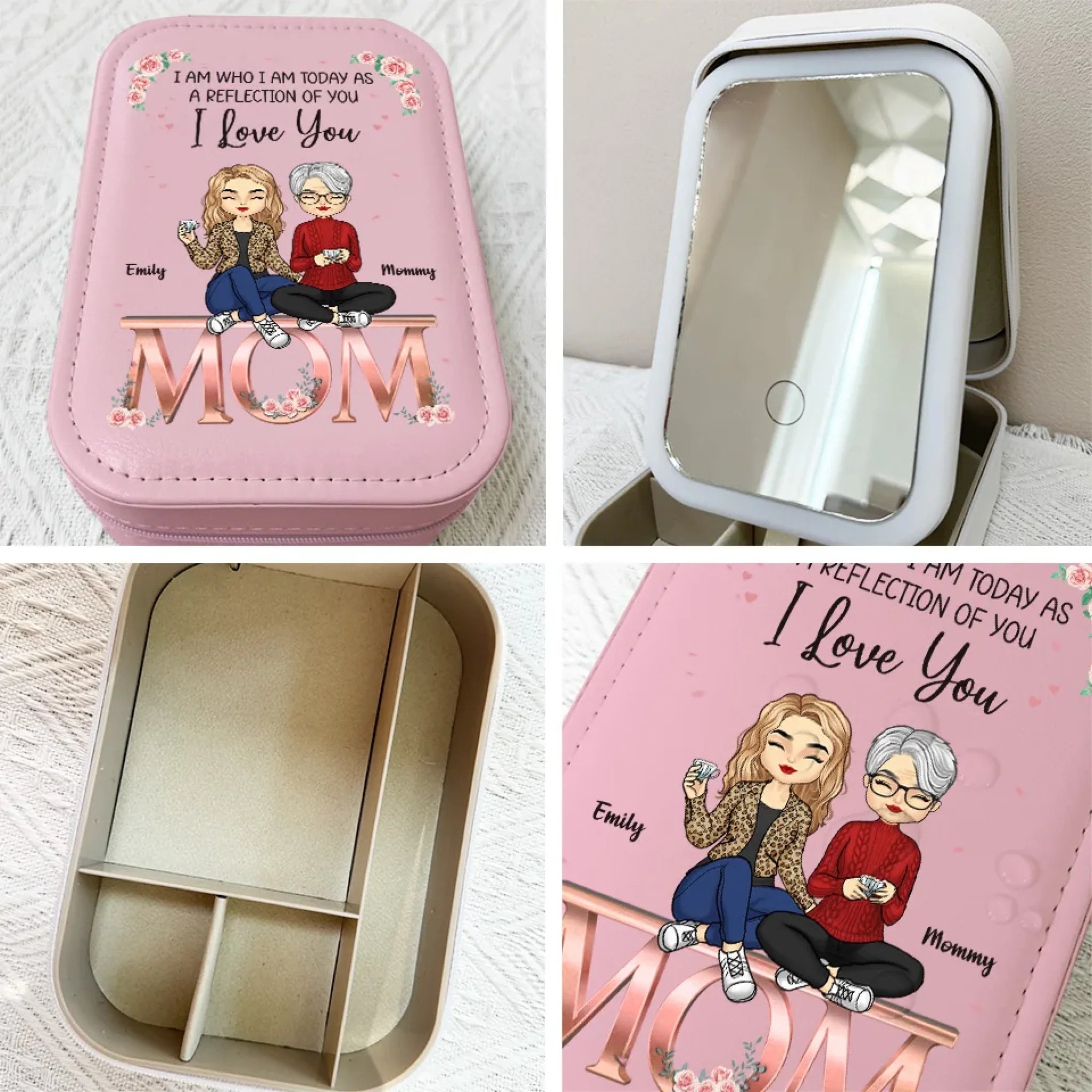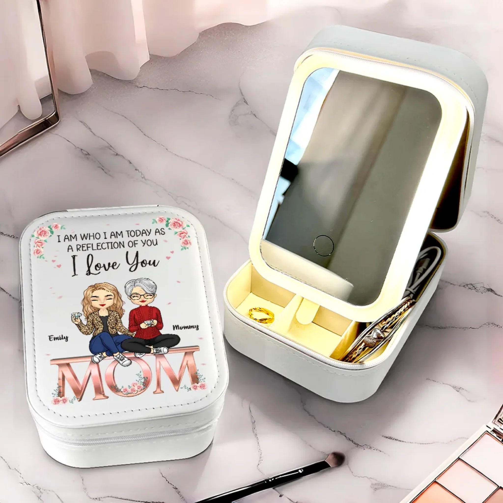 I Am Today As A Reflection Of You - Family Personalized Custom Jewelry Box LED Makeup - Gift For Mom, Daughter