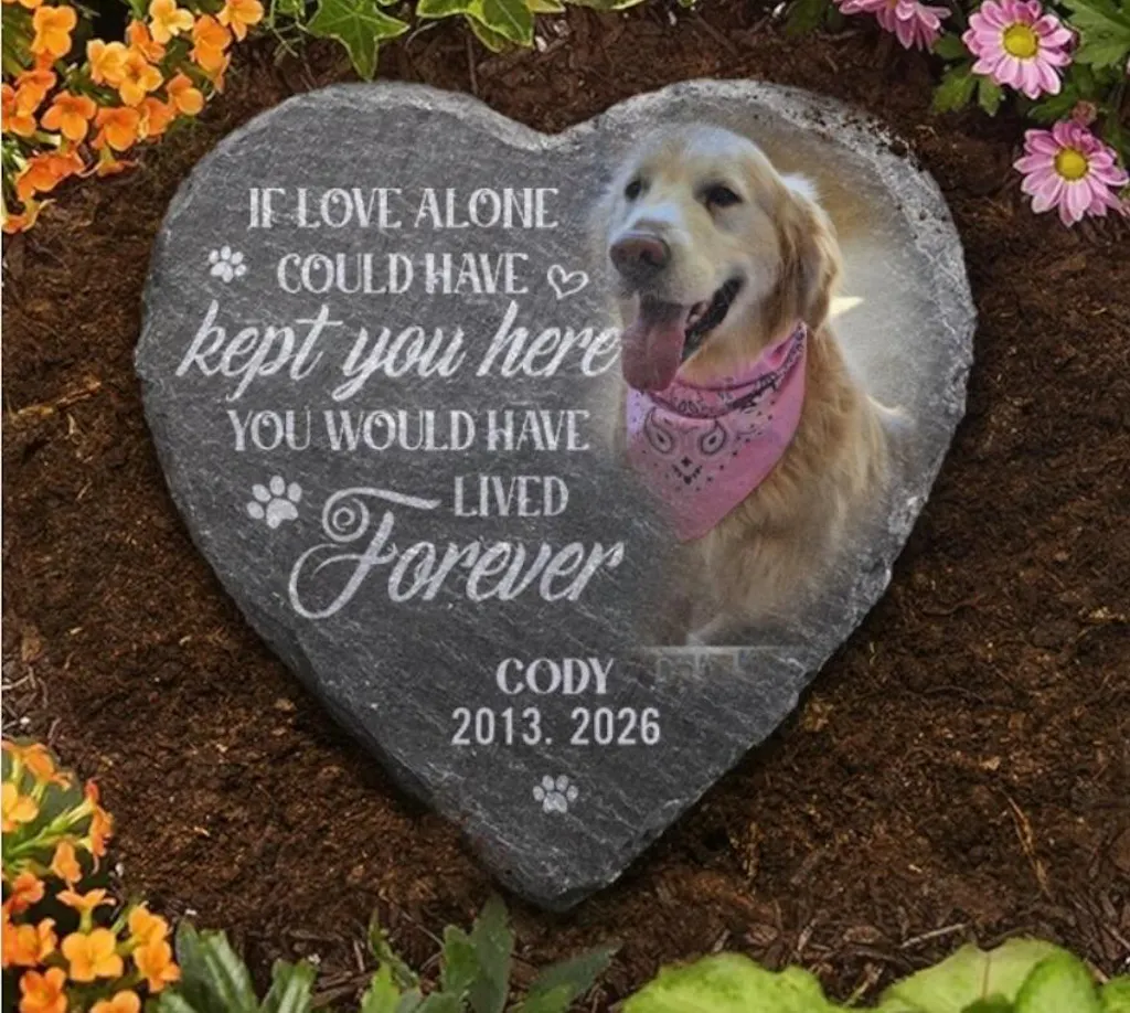 Memorial garden stone is the perfect keepsake to honor the memory of your loved one. This stone sits flat in a flower bed, garden or walkway, creating a special memorial.