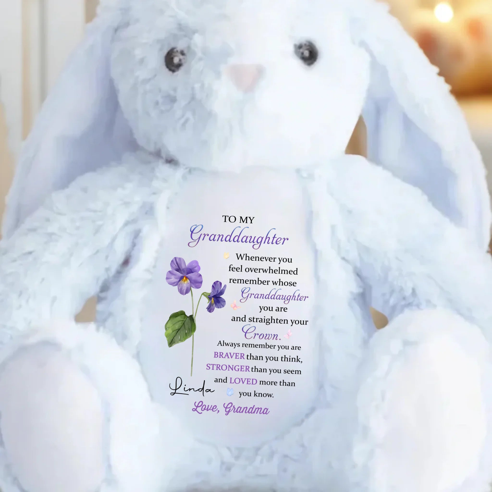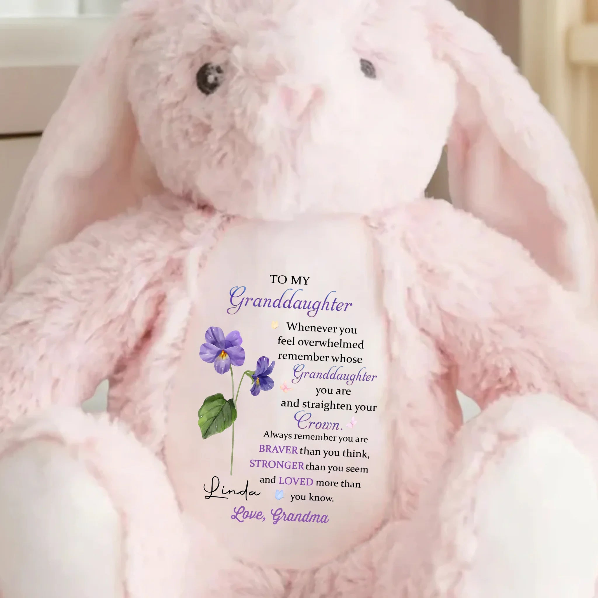 Keep Your Crown High, Sweet Girl - Family Personalized Custom Easter Bunny Plush - Gift For Daughter, Granddaughter