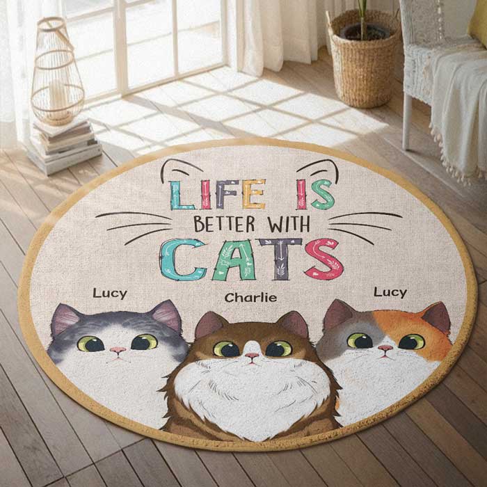 Message: “Life is better with cats”.