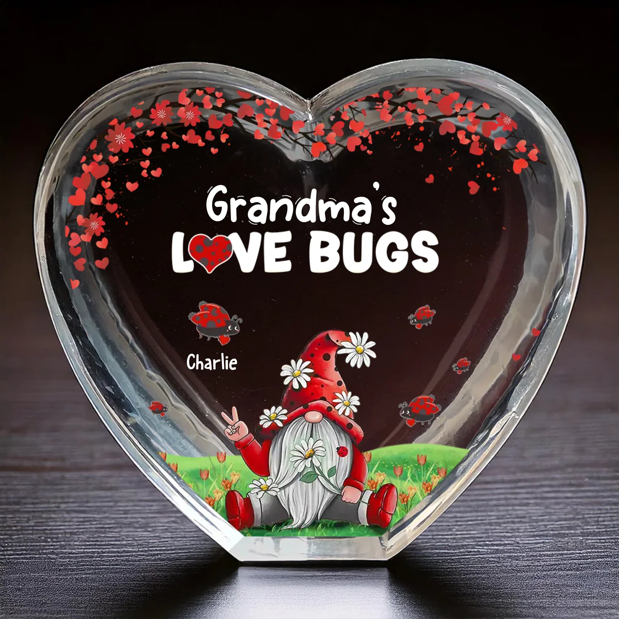 Little Bugs, Big Love - Family Personalized Custom 3D Crystal Heart Shaped - Mother's Day, Gift For Mom, Grandma