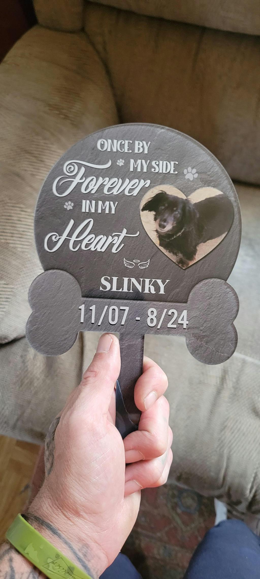 A beautiful memorial acrylic stake for garden decoration, in loving memory of those who are no longer with us. These memorial gifts can be used as a grave marker, memorial plaque or displayed amongst plants.