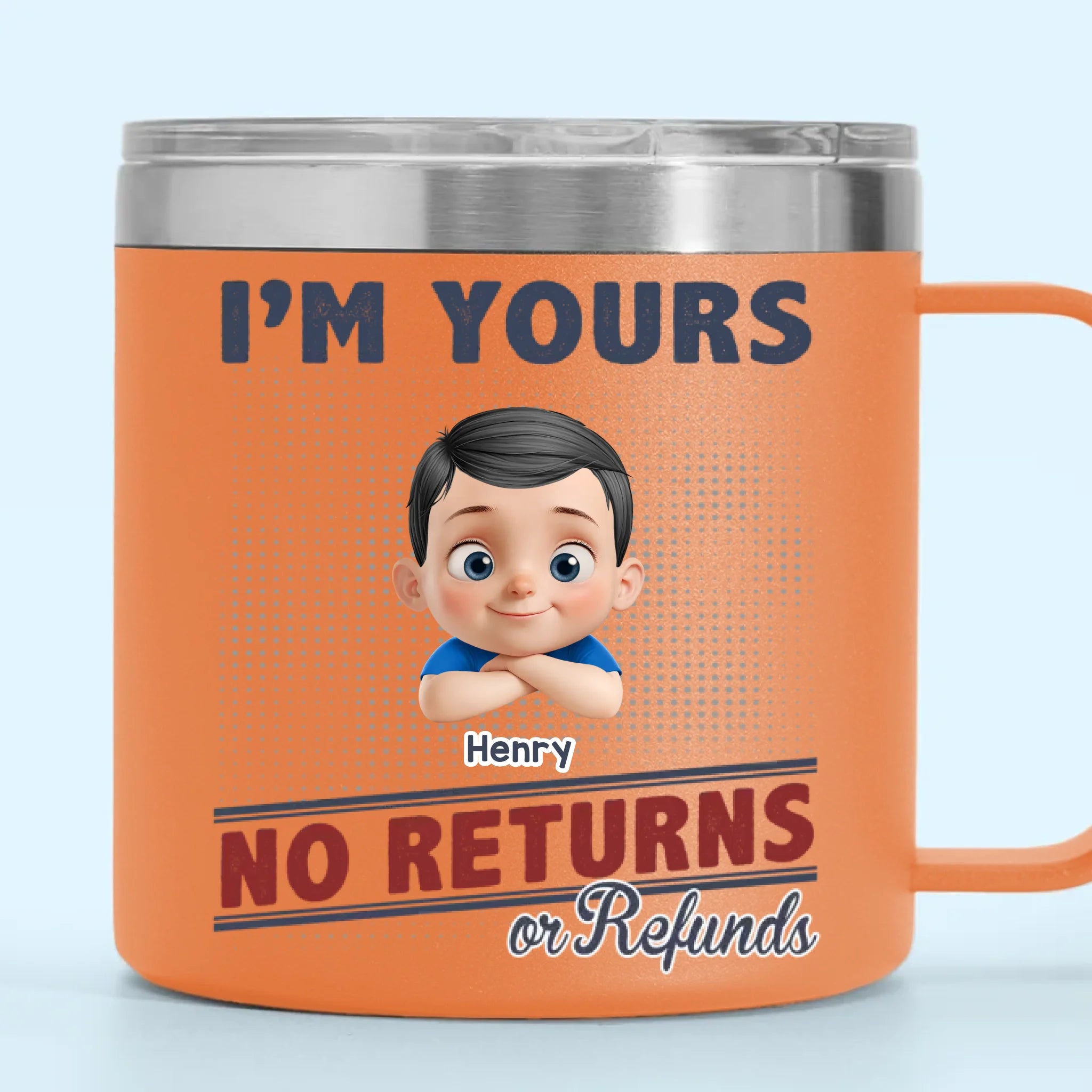 No Exchanges, No Refunds, Just Love - Family Personalized Custom 14oz Stainless Steel Tumbler With Handle - Father's Day, Gift For Dad, Grandpa