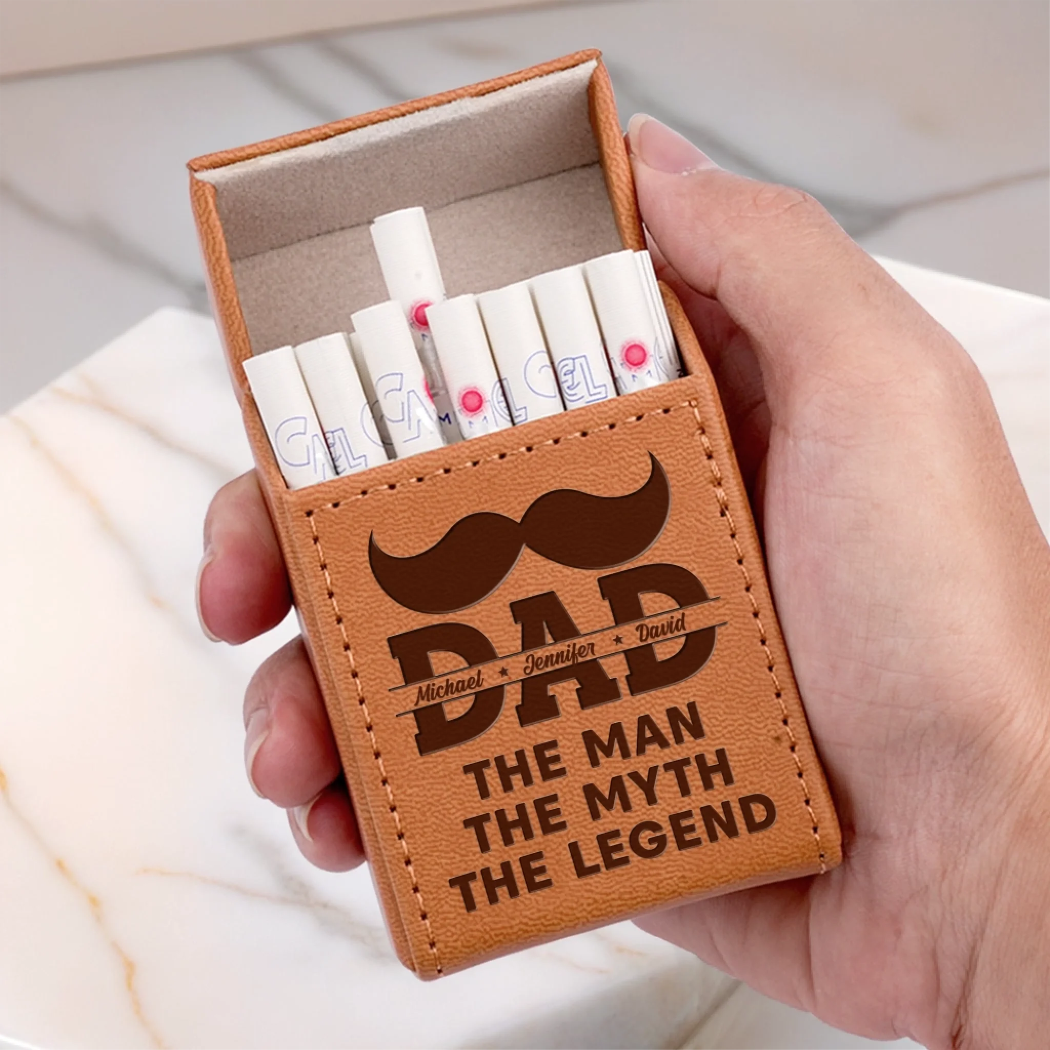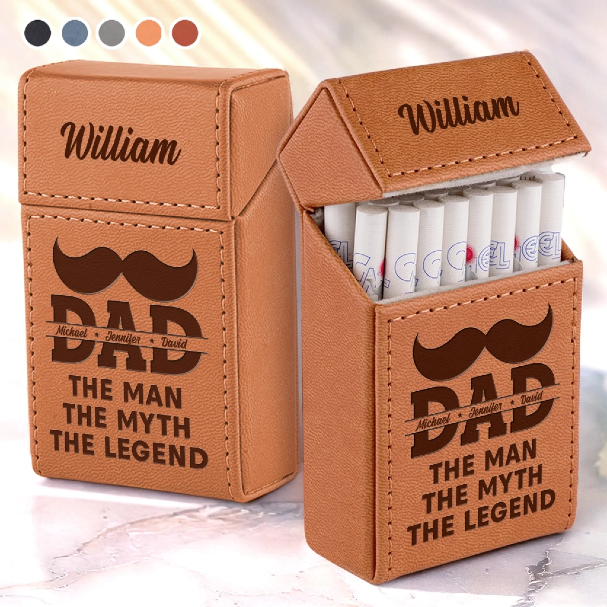 One Man Many Titles - Family Personalized Custom Leather Cigarette Case - Father's Day, Gift For Dad, Grandpa