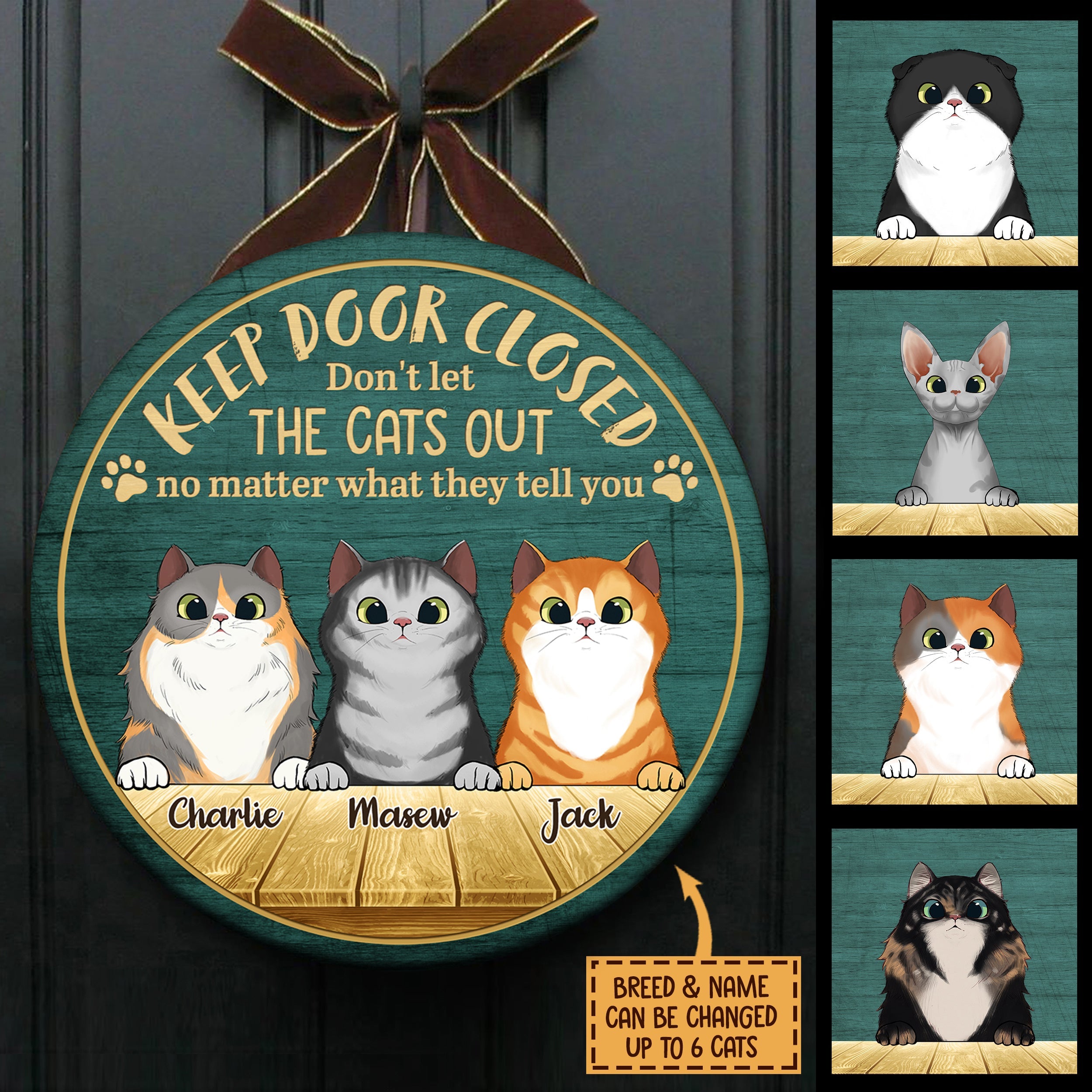 Message: “Keep door closed, don't let the cats out”.