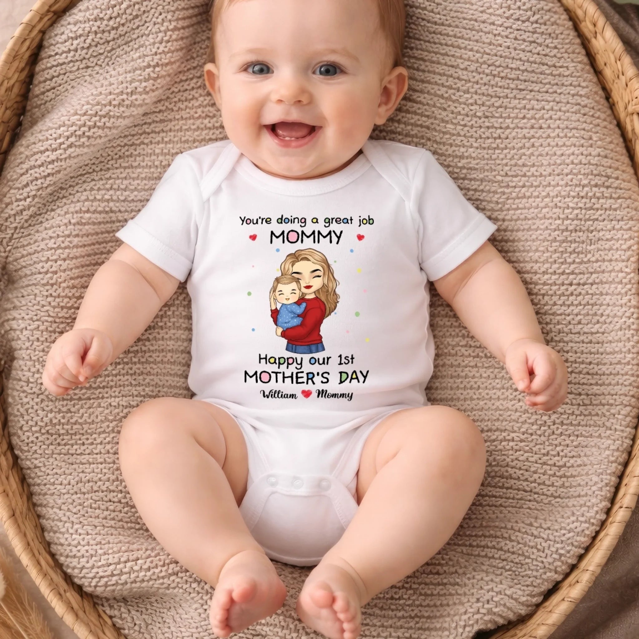 The Best Job In The World, Being My Mommy - Family Personalized Custom Baby Onesie - Mother's Day, Baby Shower Gift, Gift For First Mom