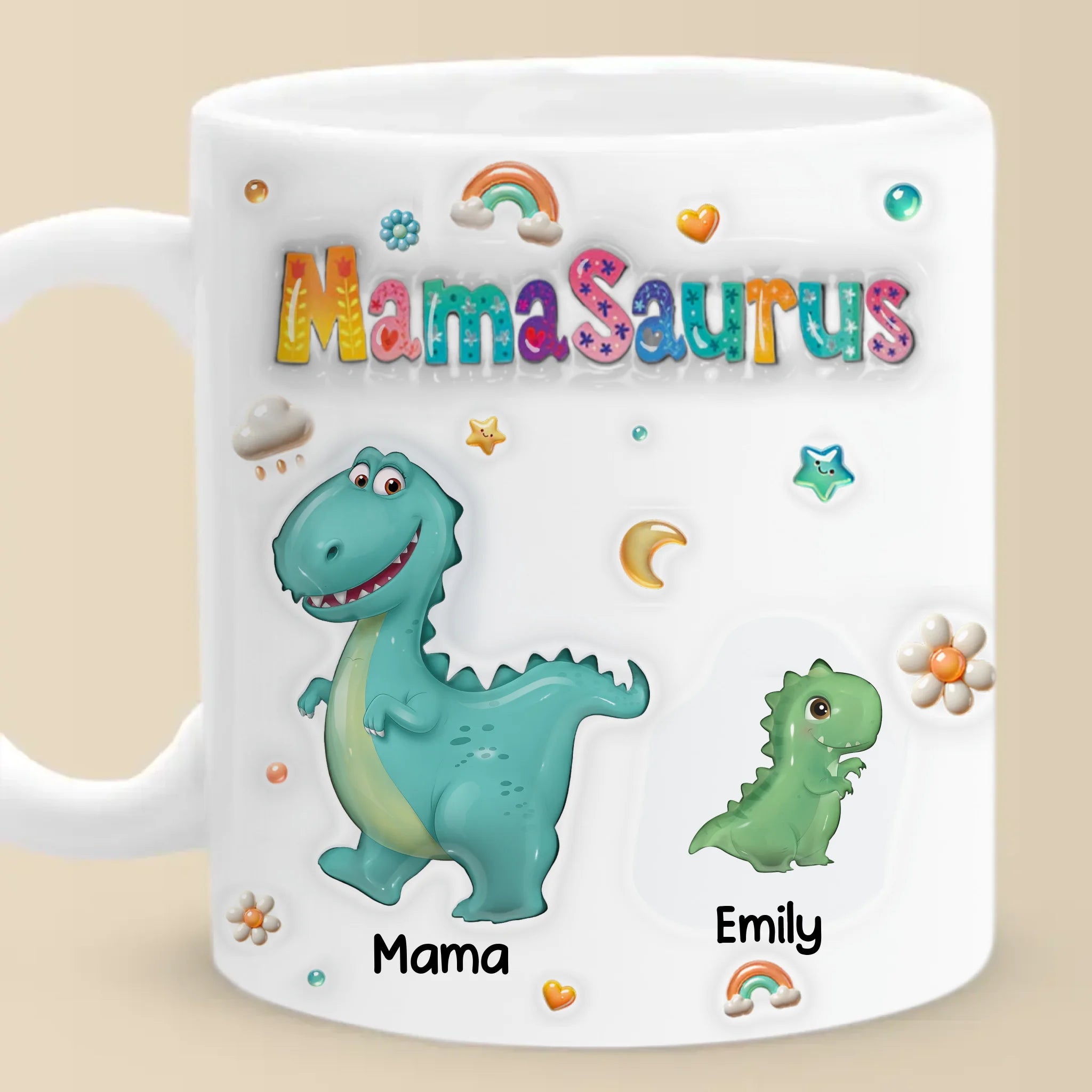 Tiny Dino, Big Love - Family Personalized Custom 3D Inflated Effect Printed Mug - Mother's Day, Gift For Mom, Grandma
