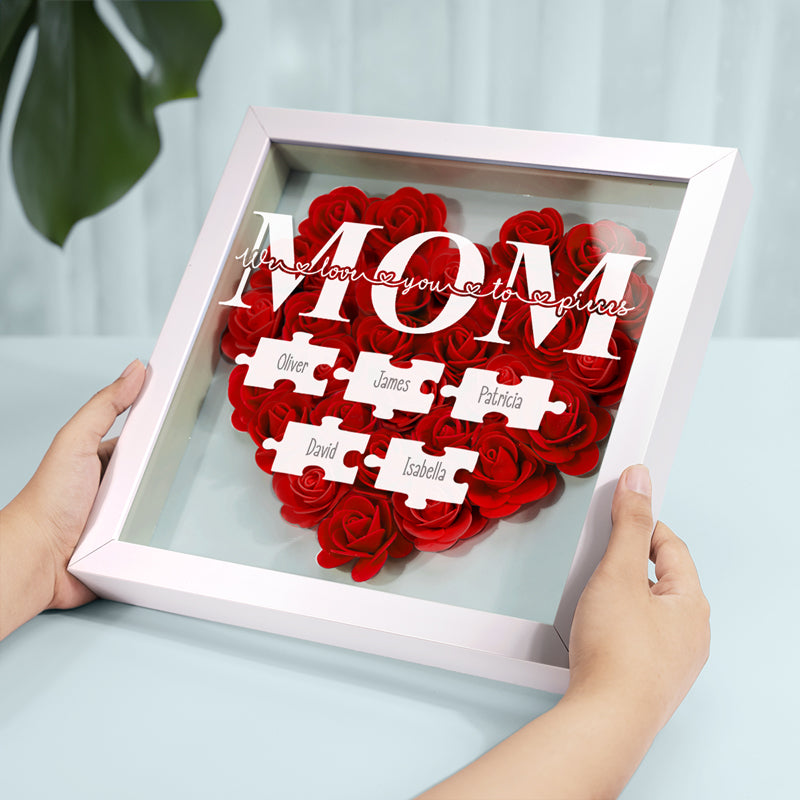 We Love You To Pieces - Family Personalized Custom Flower Shadow Box - Mother's Day, Gift For Mom, Grandma