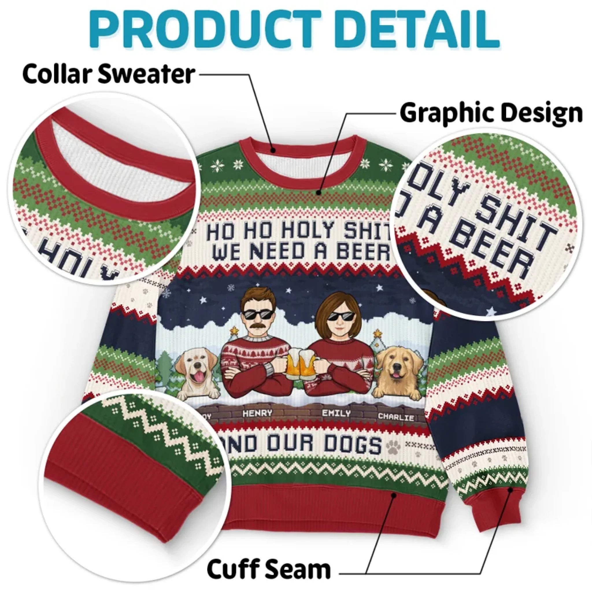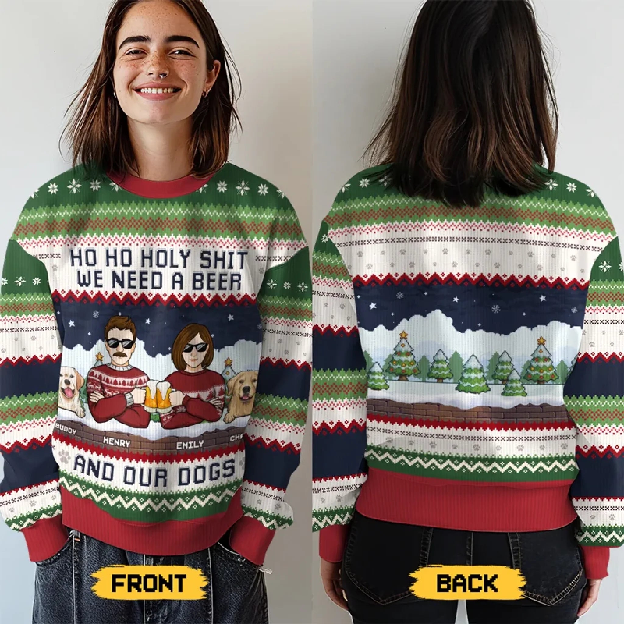 We Need A Beer And Our Cats - Dog & Cat Personalized Custom Ugly Sweatshirt - Unisex Wool Jumper - Christmas Gift For Husband Wife, Pet Owners, Pet Lovers