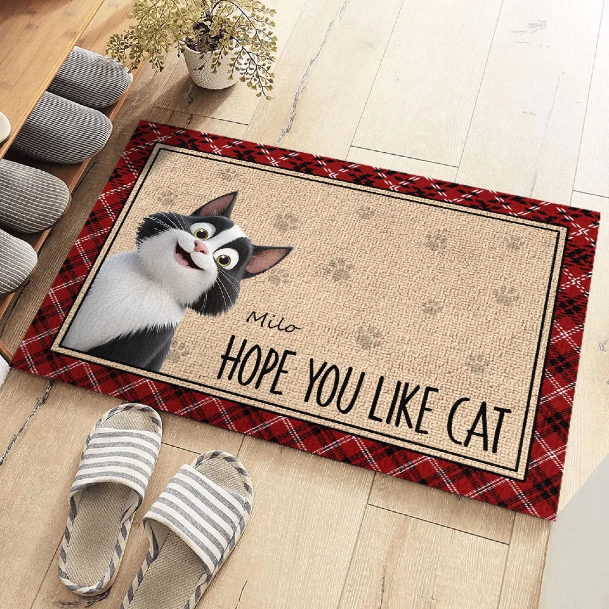 Welcome To Our Home - Cat Personalized Custom Home Decor Decorative Mat - House Warming Gift For Pet Owners, Pet Lovers