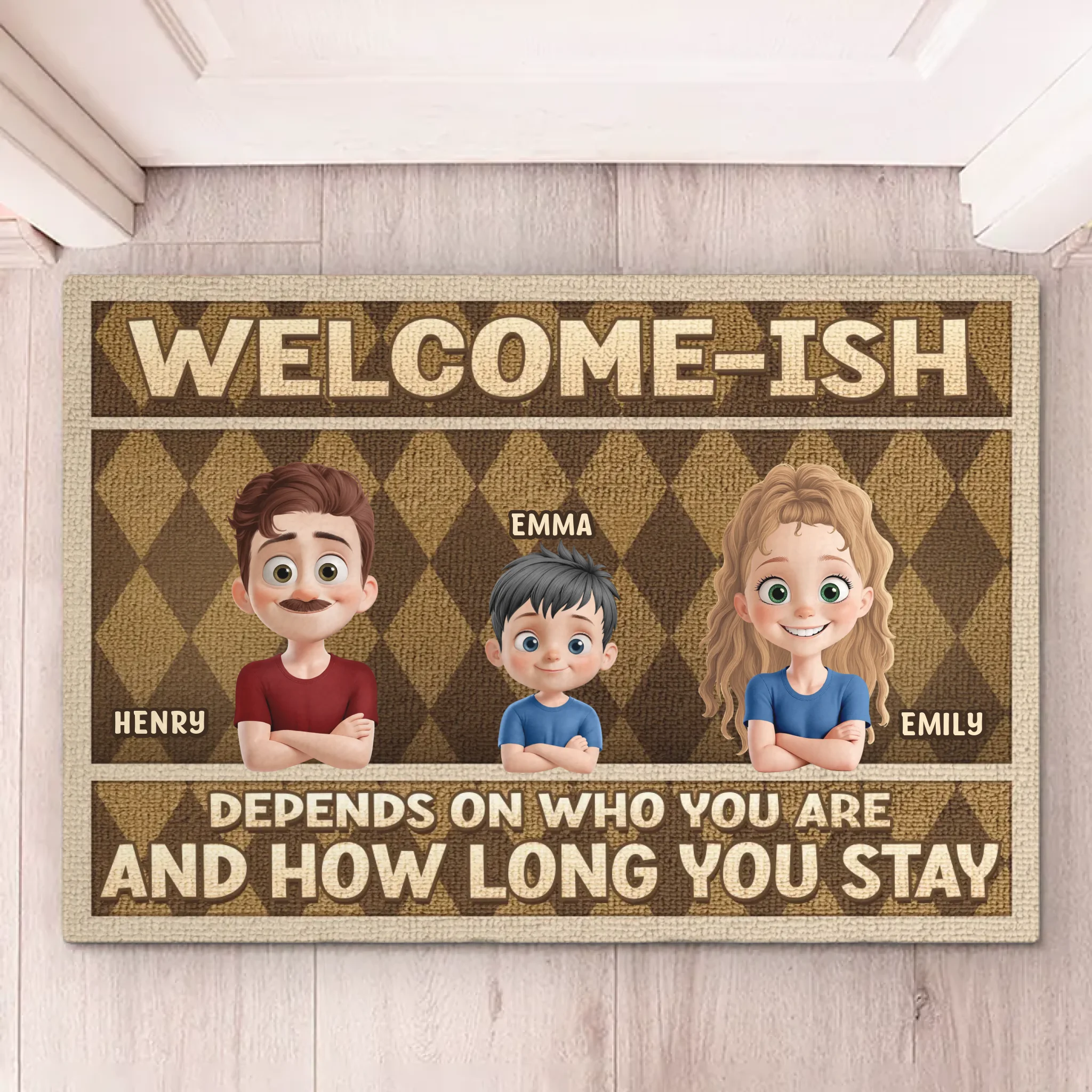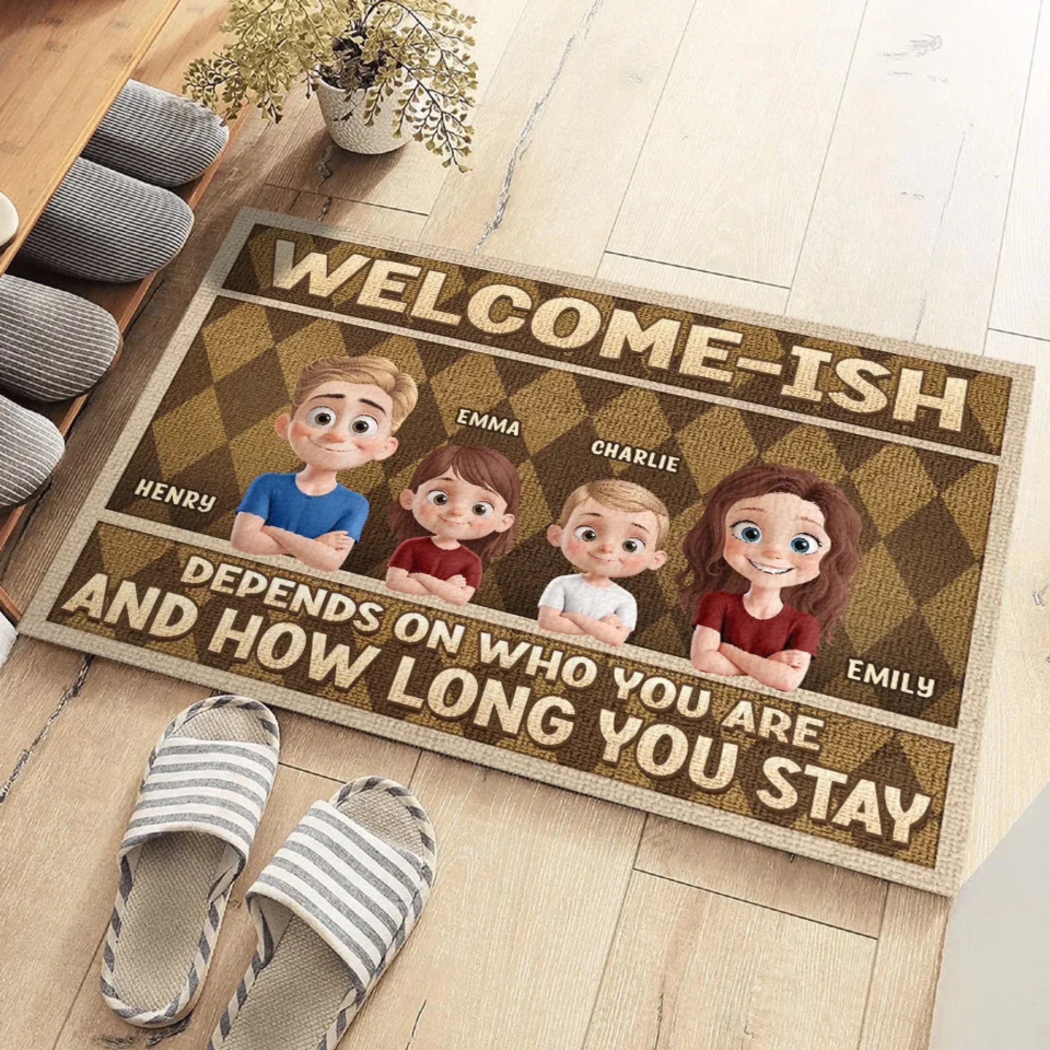 Welcome Unless You Overstay - Family Personalized Custom Home Decor Decorative Mat - House Warming Gift For Family Members