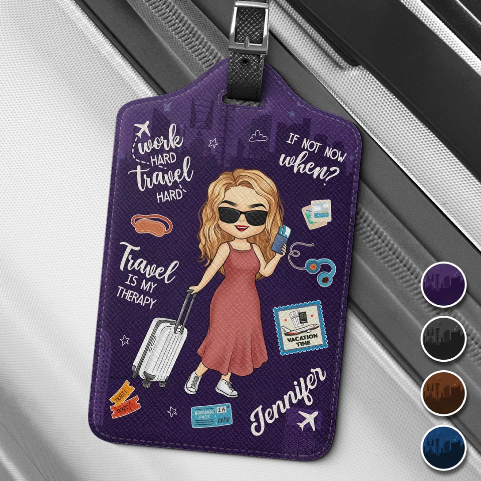 Work Hard, Travel Harder - Travel Personalized Custom Luggage Tag - Holiday Vacation Gift, Gift For Adventure Travel Lovers